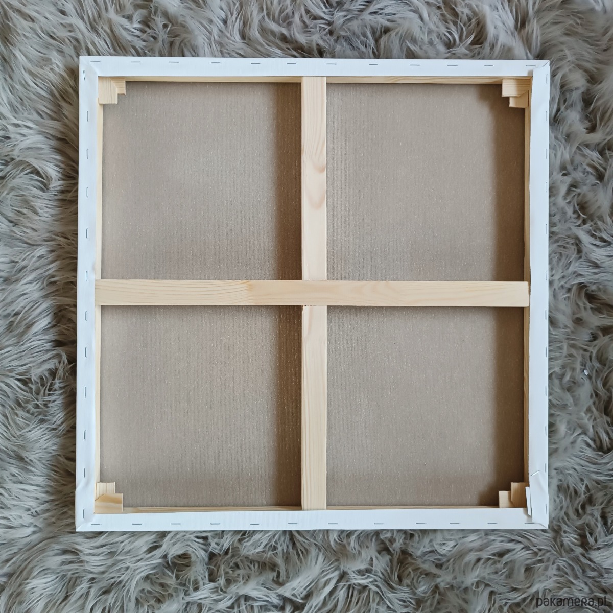 Obraz abstrakcyjny malowany farbami akrylowymi i tuszem akrylowym na płótnie bawełnianym polskiej produkcji typu 3D (bok 3,5 cm). Zabezpieczony werniksem. Sygnowany z boku podobrazia i z tyłu. Boki są przedłużeniem obrazu, gotowy do powieszenia bez ramy.