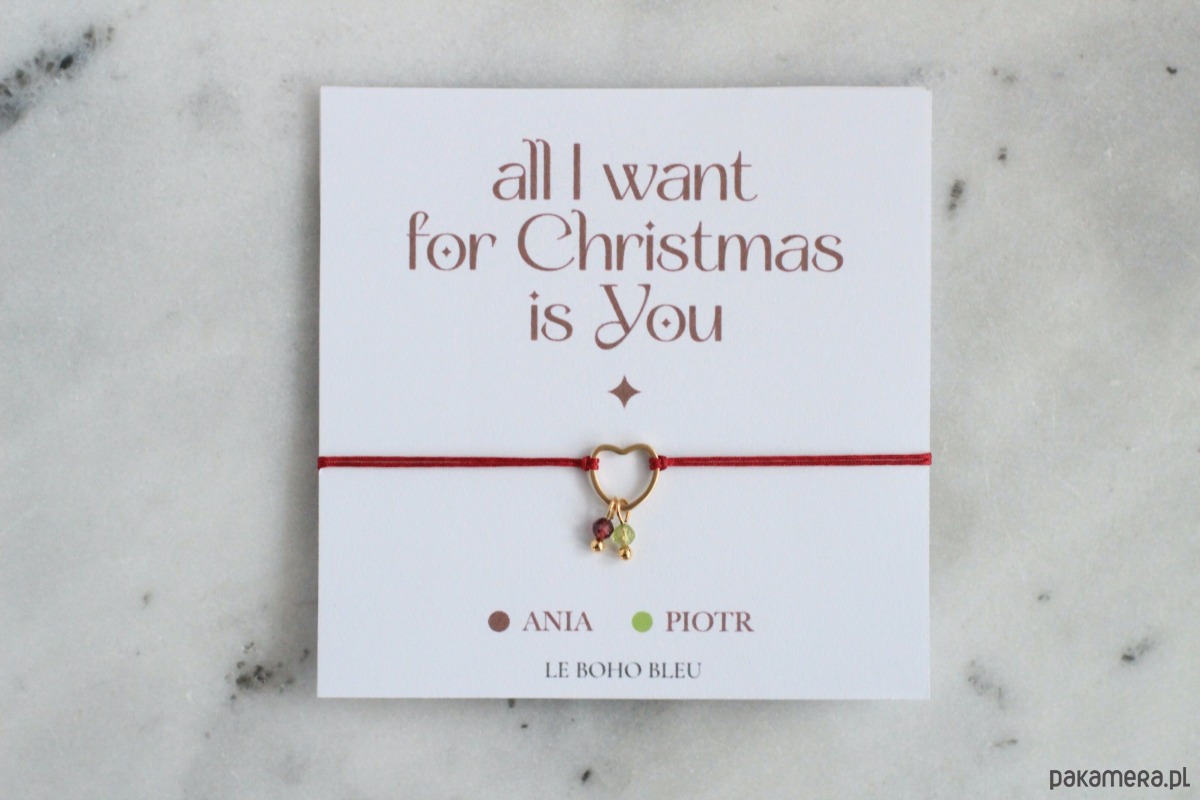 Bransoletka "ALL I WANT FOR CHRISTMAS IS YOU" jest pewnego rodzaju amuletem dla osoby obdarowanej, składającym się z kamieni urodzeniowych: JEJ kamienia i kamienia ukochanej osoby.