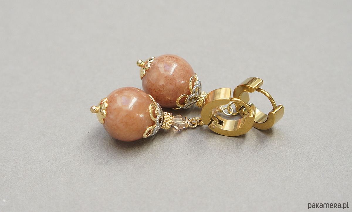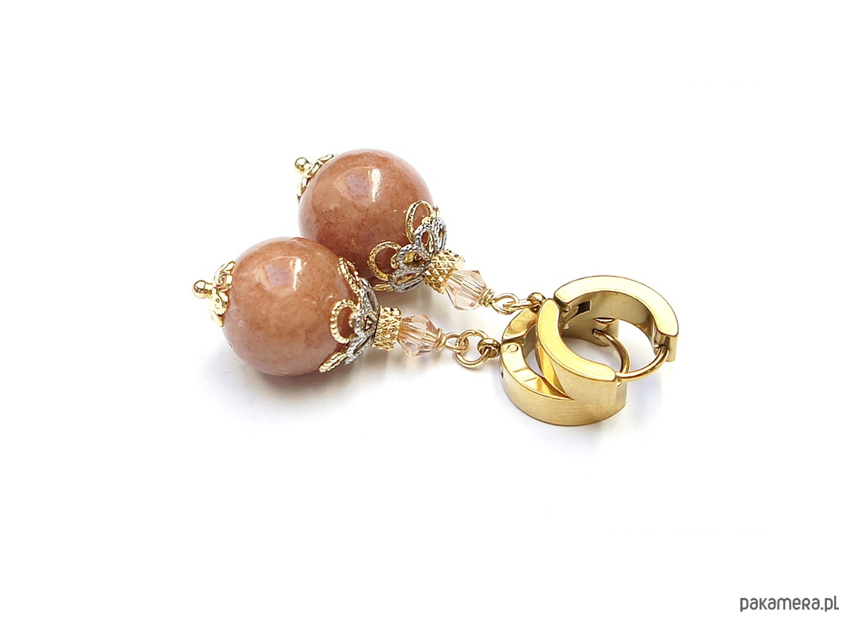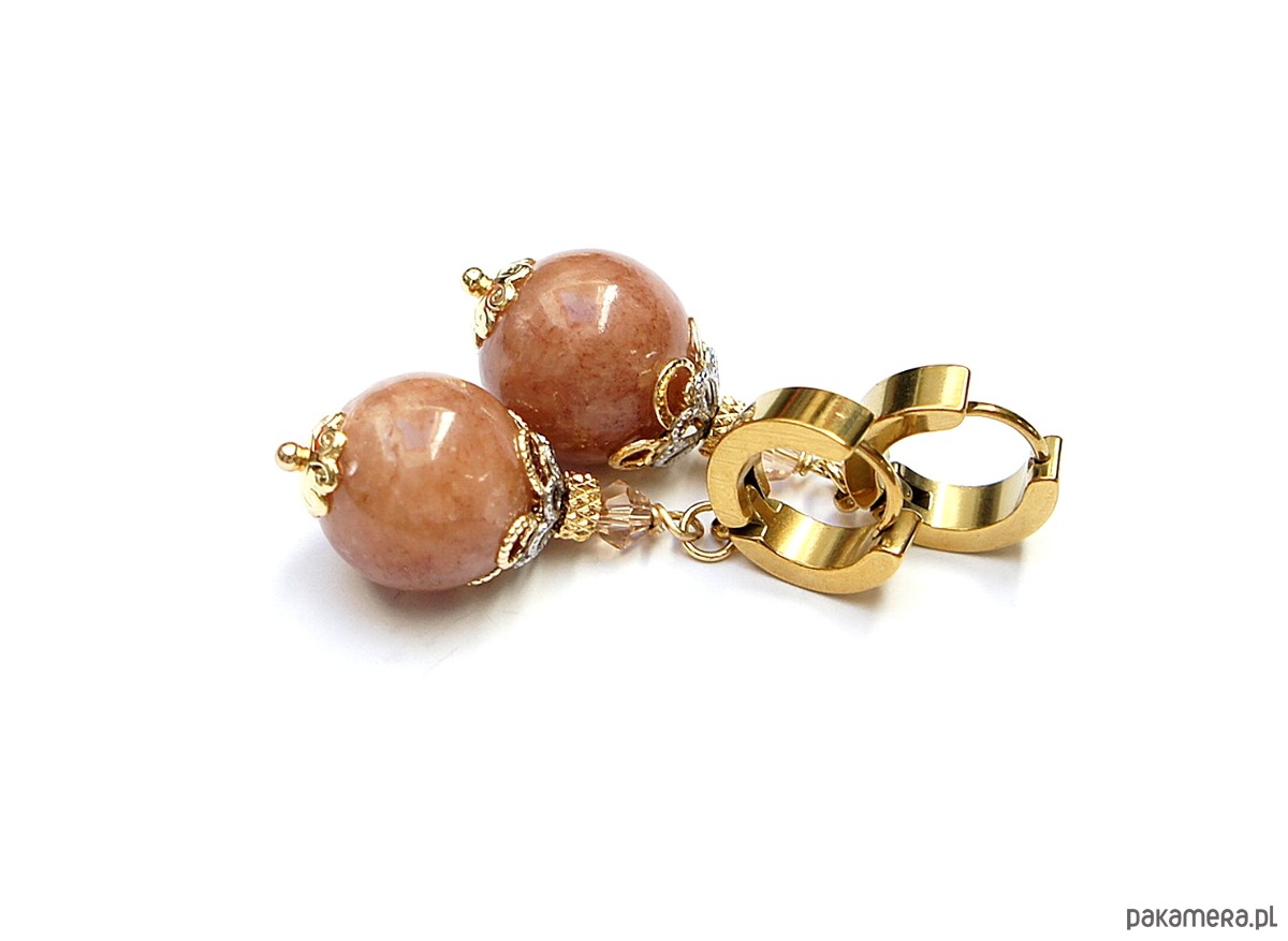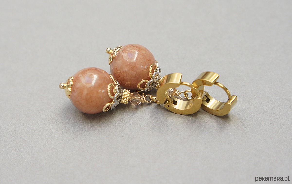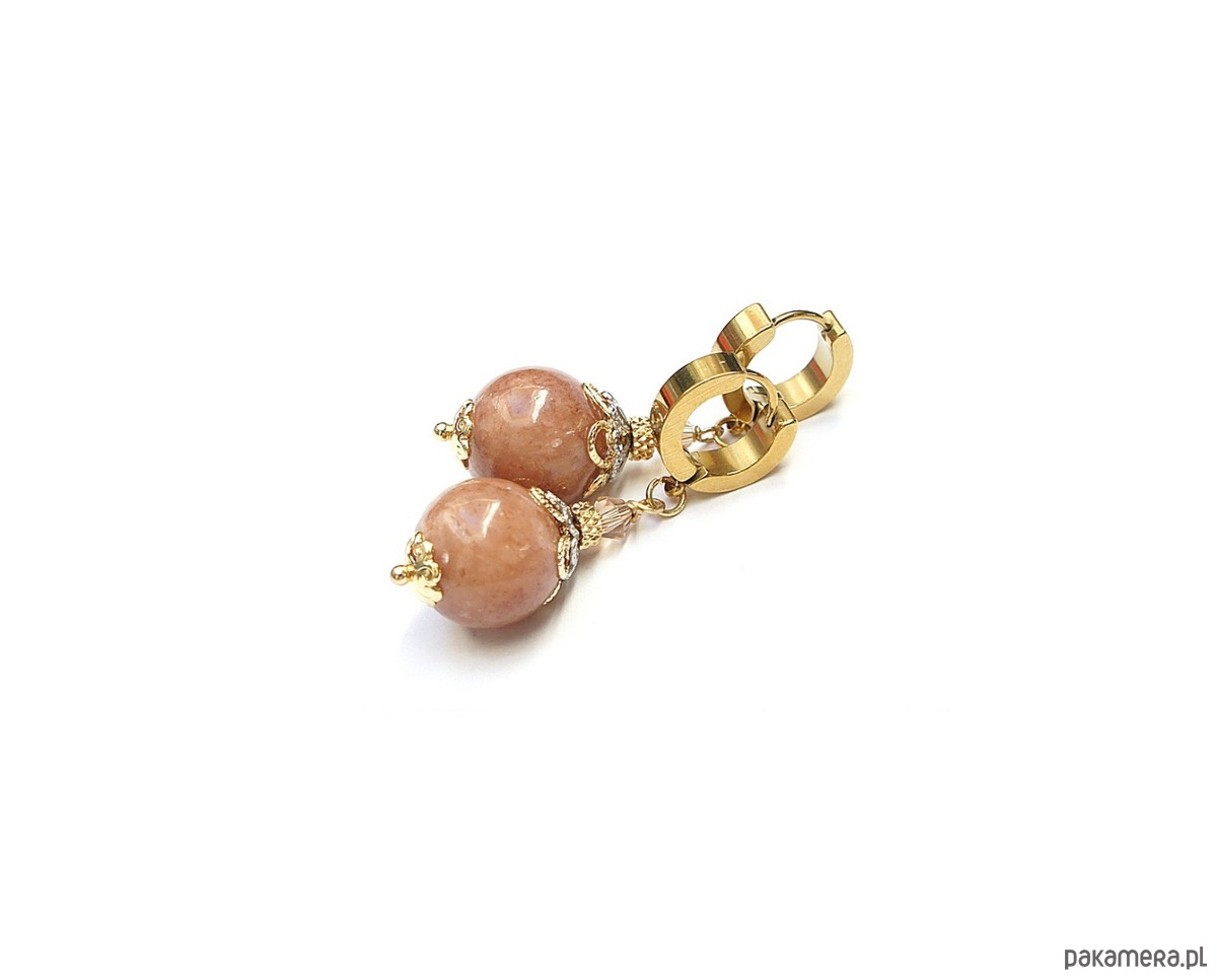 Kolczyki wykonane z naturalnych kamieni - marmur [12mm],fasetowane kuleczki kryształków [4mm] oraz z pozłacanej stali szlachetnej. Długość kolczyków: ok. 4,3cm. Bigle - kajdanki. Biżuteria ozdobnie zapakowana.