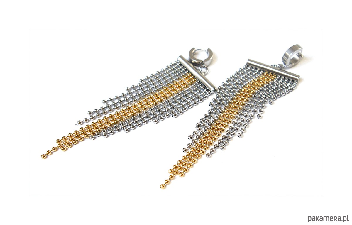 Kolekcja Alloys Collection to propozycje, które wykonywane są tylko z brązu, brązu platerowanego srebrem [pr. 925] lub stali szlachetnej - żadnych innych metali. Długie, spektakularne kolczyki wykonane ze stali szlachetnej. Całkowita długość kolczyków ok. 11,5cm. Biżuteria ozdobnie zapakowana.