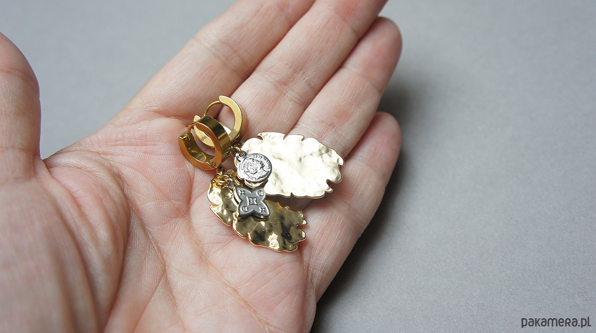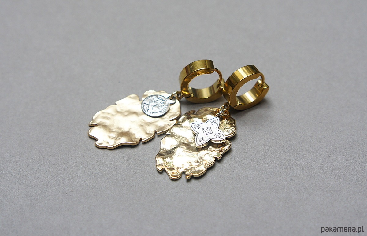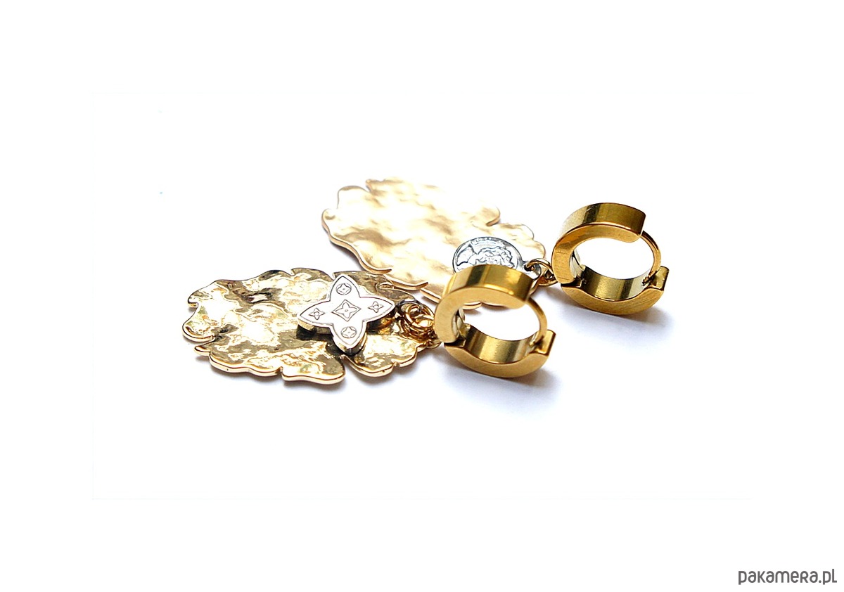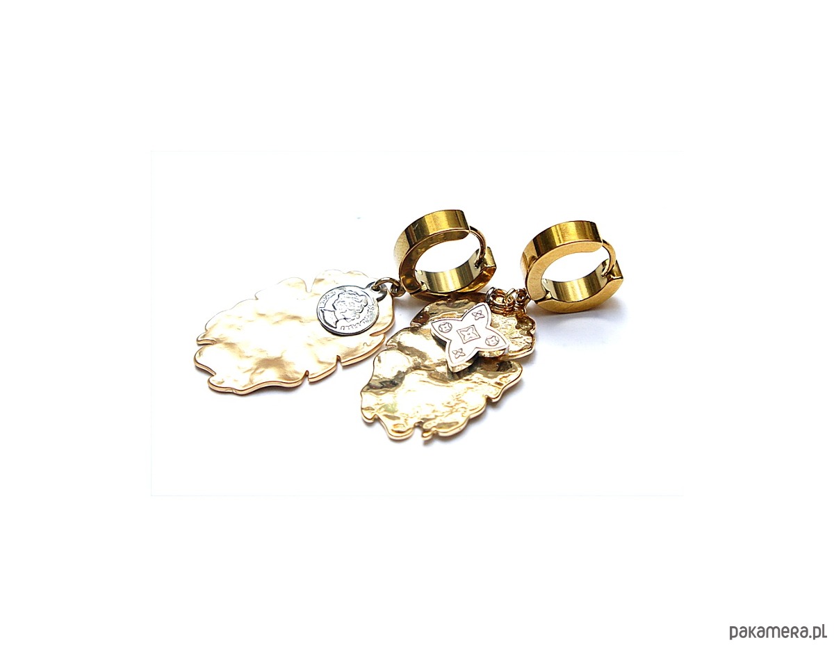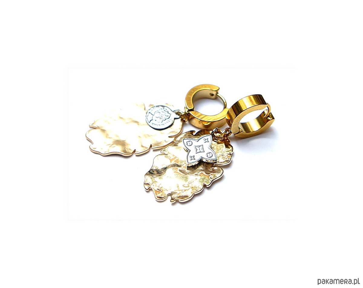 Kolczyki wykonane ze stali szlachetnej oraz mosiądzu platerowanego. Długość kolczyków: ok. 4,2cm. Bigle - kajdanki. Biżuteria ozdobnie zapakowana.