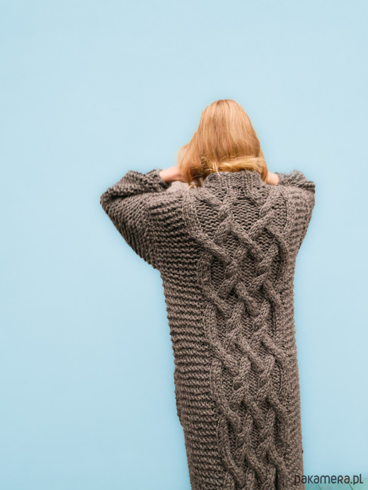 Wełniany długi kardigan płaszcz z efektownym warkoczowym splotem , niezwykle ciepły i szykowny sweter doskonały jest na jesień.