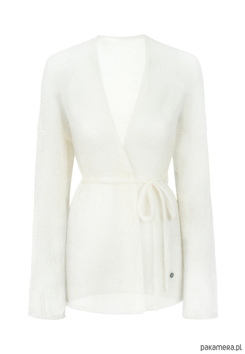 Lovina to elegancki i niezwykle lekki kardigan, który sprawdzi się przez cały rok. Dzięki klasycznemu krojowi z rozcięciem z przodu i paskiem pięknie podkreśla talię i daje możliwość różnych stylizacji.