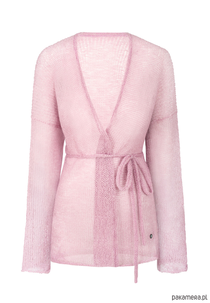 Lovina to elegancki i niezwykle lekki kardigan, który sprawdzi się przez cały rok. Dzięki klasycznemu krojowi z rozcięciem z przodu i paskiem pięknie podkreśla talię i daje możliwość różnych stylizacji.