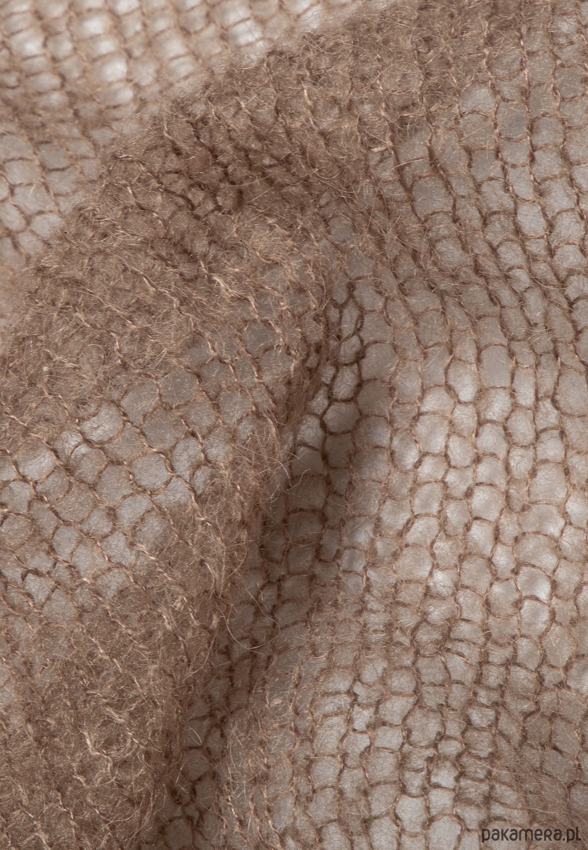 Włóczka z alpaki jest ceniona za swoje naturalne właściwości termiczne i delikatność, co sprawia, że szal jest lekki, przyjemny w dotyku i doskonale izoluje ciepło. Dzięki swojej wyjątkowej strukturze jest również odporna na mechacenie i długotrwałe użytkowanie.