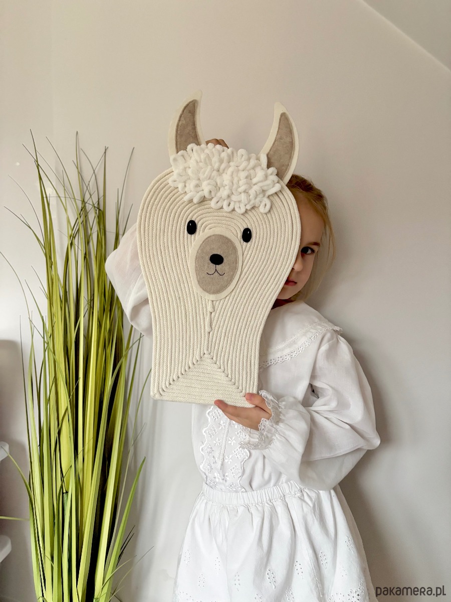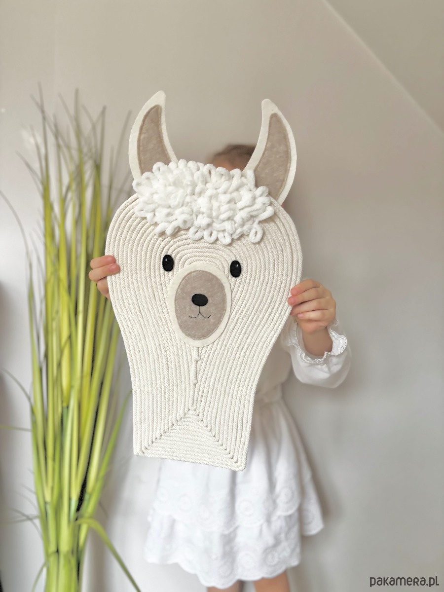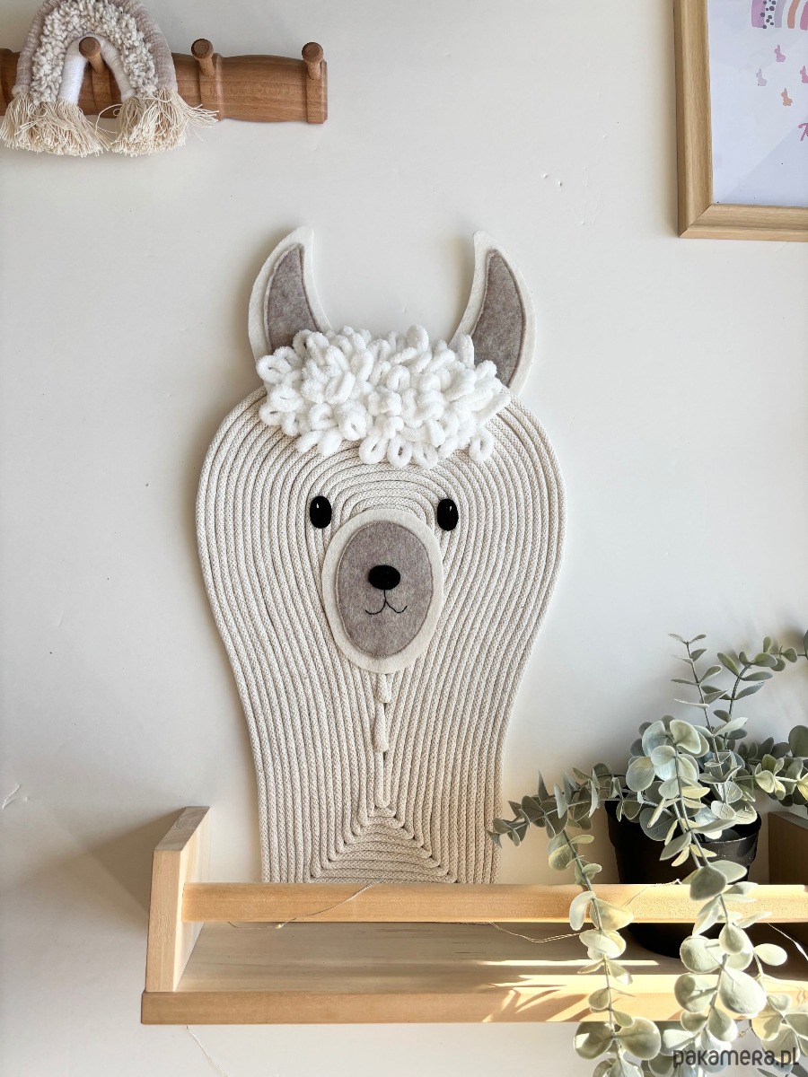 Alpaka świetnie pasuje do stylu boho, naturalnych i neutralnych wnętrz oraz pokojów dziecięcych inspirowanych naturą i zwierzątkami. To piękna ozdoba do zawieszenia nad łóżeczkiem, komodą lub w kąciku do zabawy.