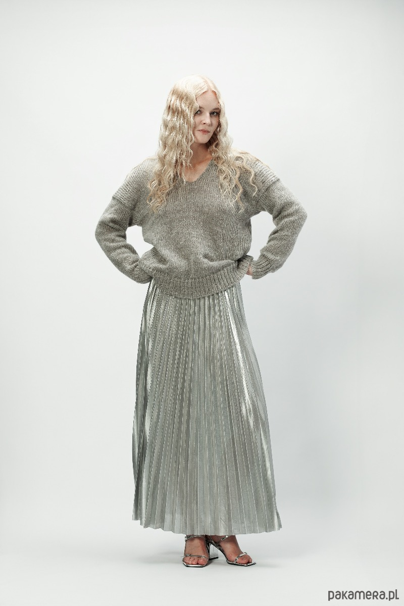 Mia z kolekcji BŁYSK to sweter, w którym od razu poczujesz różnicę. Miękka alpaka otuli Cię ciepłem i lekkością, dodatek włókien syntetycznych zadba o trwałość i łatwą pielęgnację. Efekt? Sweter, który wygląda pięknie i służy przez lata.