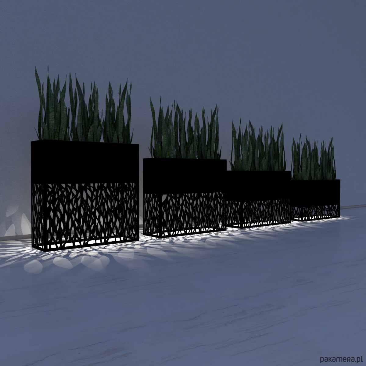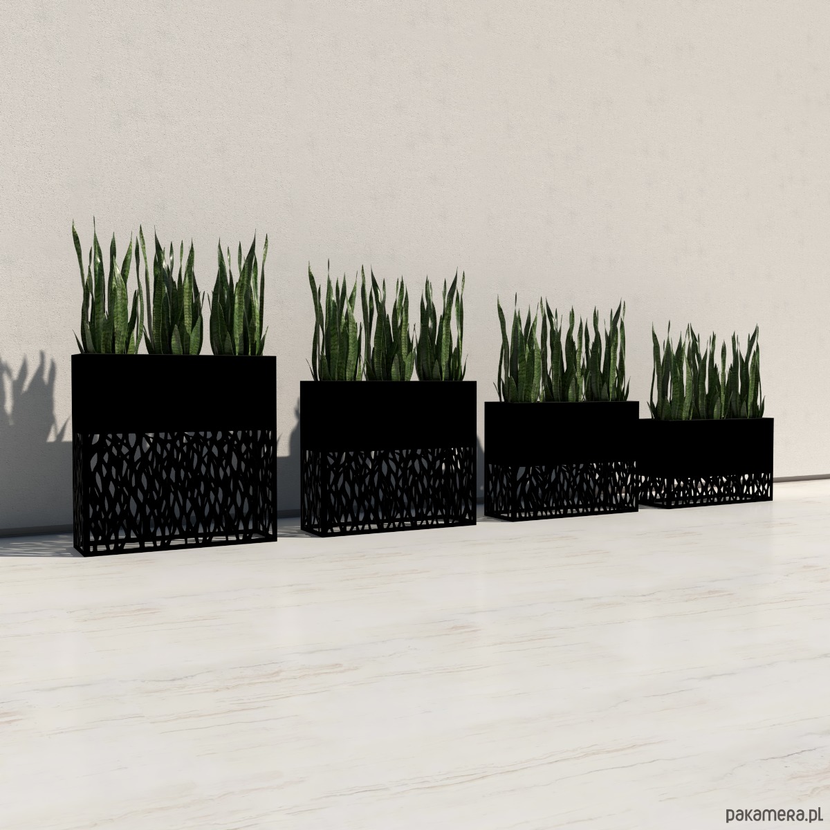Wykonana z aluminiowej płyty kompozytowej typu dibond, nasza donica wyróżnia się trwałością i nowoczesnym designem. Zdobienia, precyzyjnie wycięte technologią CNC, nadają jej unikatowy charakter. Produkt wysyłamy w całości - od razu po rozpakowaniu wpasuje się w Twoje wnętrze, dodając mu elegancji.