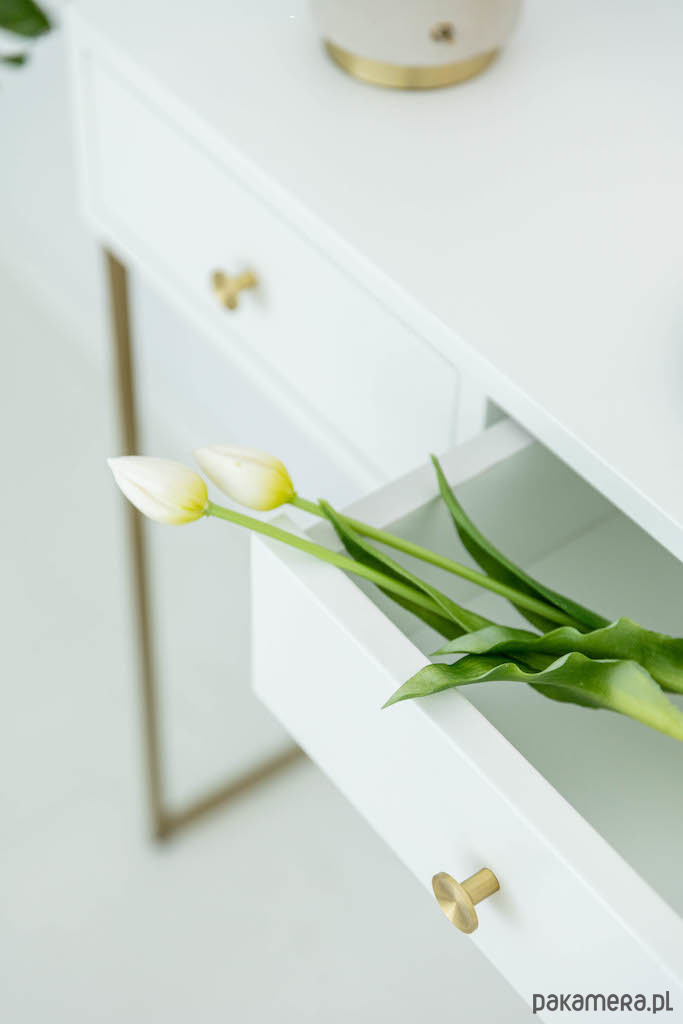 Amara- Biała matowa konsola, konsola z szufladami, wąska toaletka