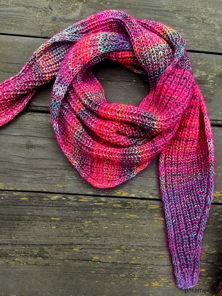 Miękka, delikatnie puszysta i lejąca chusta, wykonana ręcznie na drutach z wysokiej jakości włóczek.