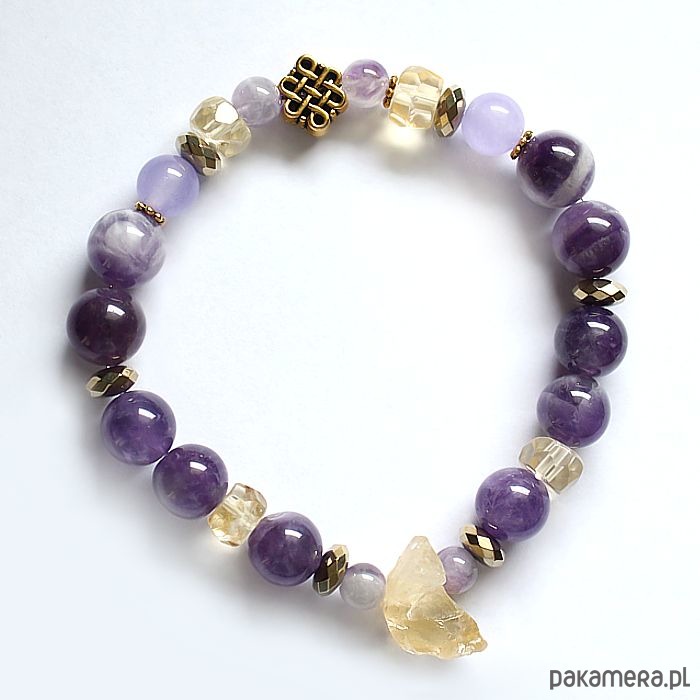 Energetyczna bransoletka z ametystem, cytrynem, pirytem, ametrynem i chalcedonem.