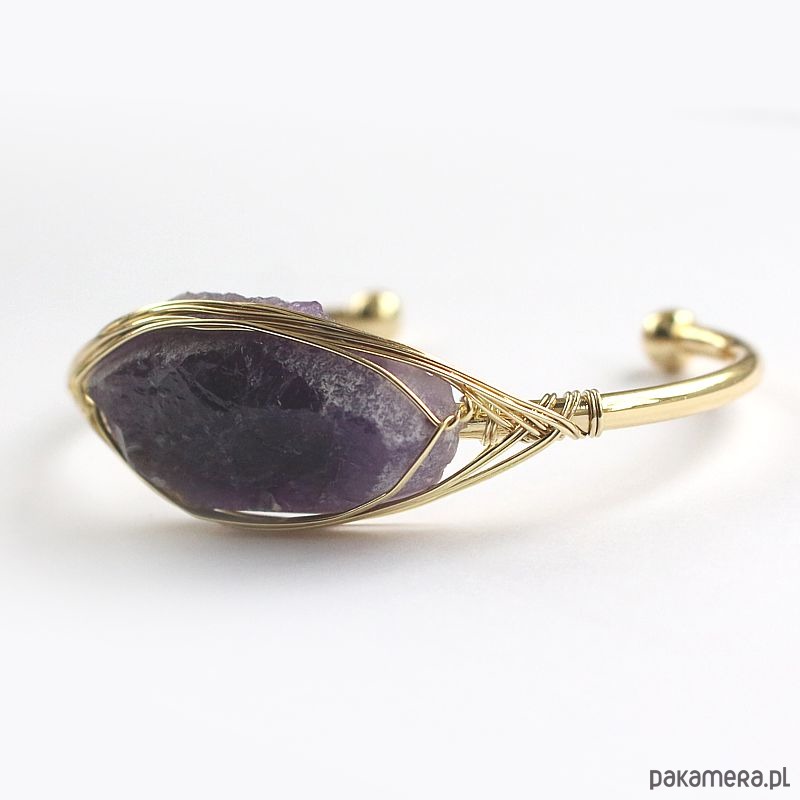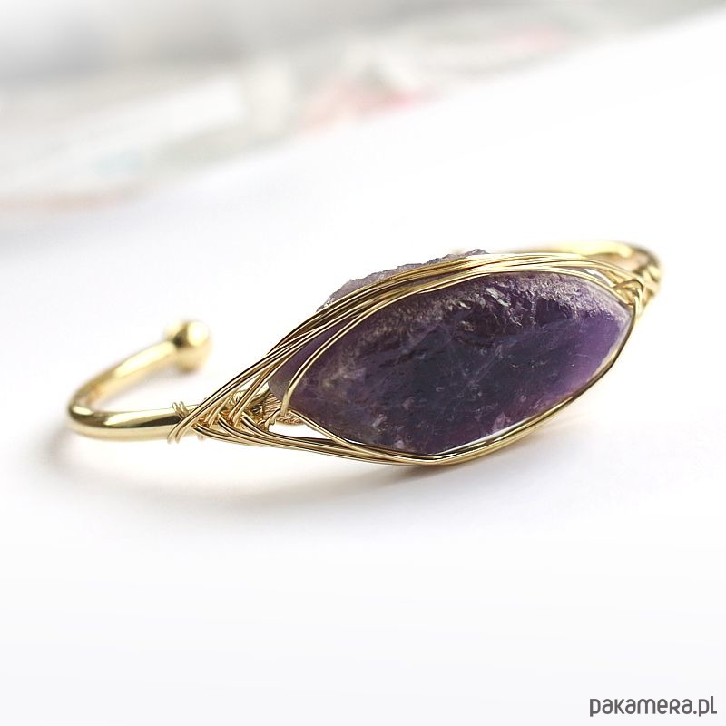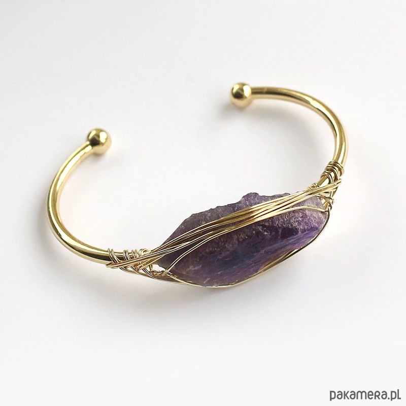 Elegancka energetyczna bransoletka z pozłacanej miedzi z pięknym surowym ametystem. Oczyszczona, zregenerowana, napełniona energią czystego światła o najwyższej wibracji. ❤