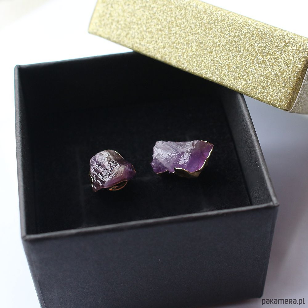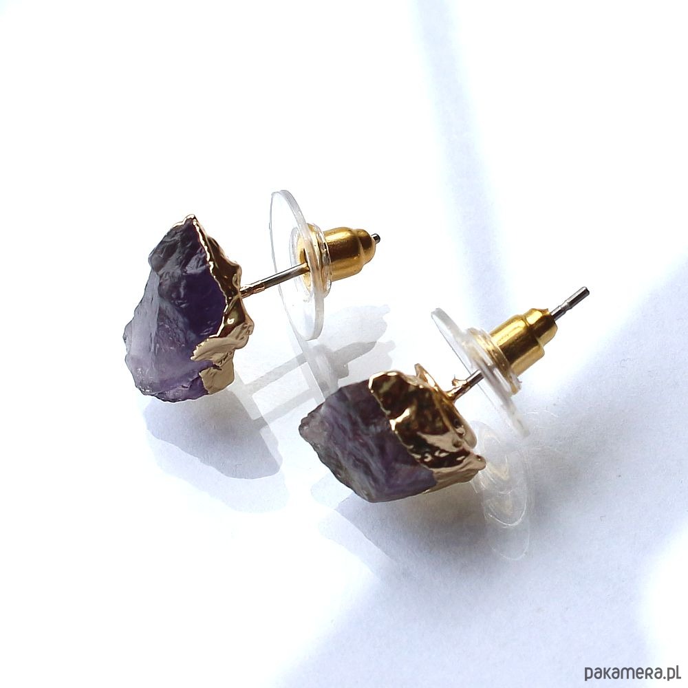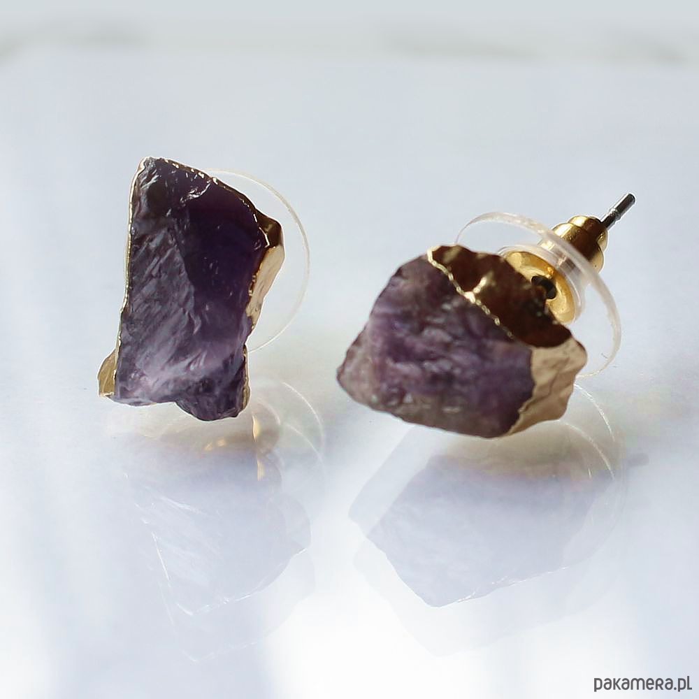 Ametyst surowy kolczyki pozłacane asymetryczne