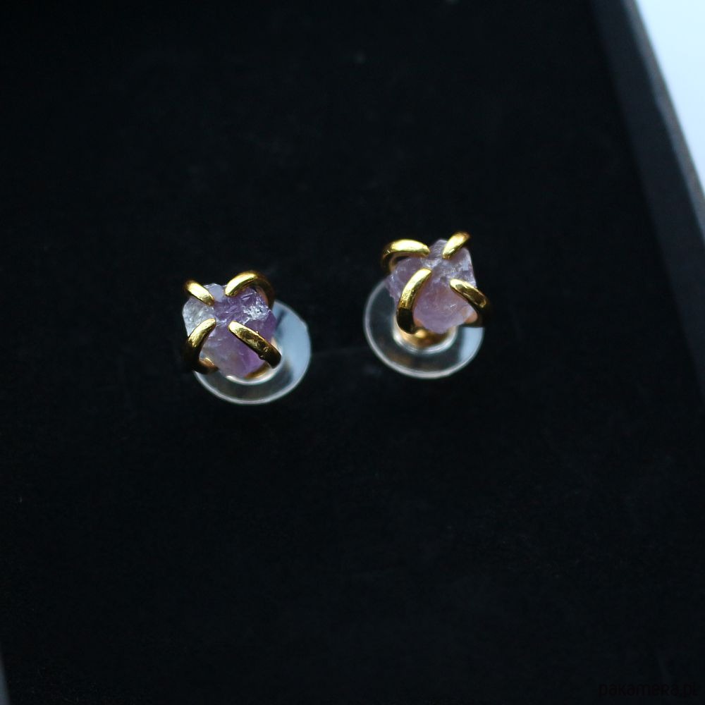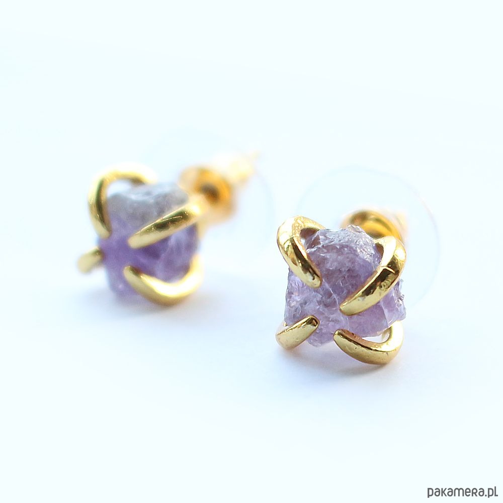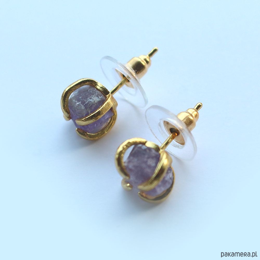 Ametyst surowy kolczyki pozłacane
