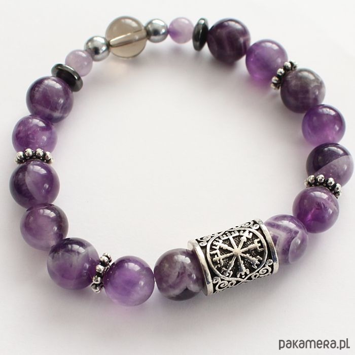 Energetyczna bransoletka ochronna z ametystem i kompasem Wikingów -symbolem runicznym VEGVISIR, który wskazuje ścieżkę Czystego Światła, drogę do Domu - Źródła i autentyczną prawdę.Chroni przed negatywnymi energiami, manipulacjami umysłu (mind control) oraz wzmacnia czakrę korony (czystość intencji, silna i niezależna postawa życiowa). Wspomaga stabilność osobistej wibracji, łączność ze Źródłem Życia i z Matką Ziemią.Oczyszczona, zregenerowana, napełniona energią czystego światła o najwyższej wibracji. ❤