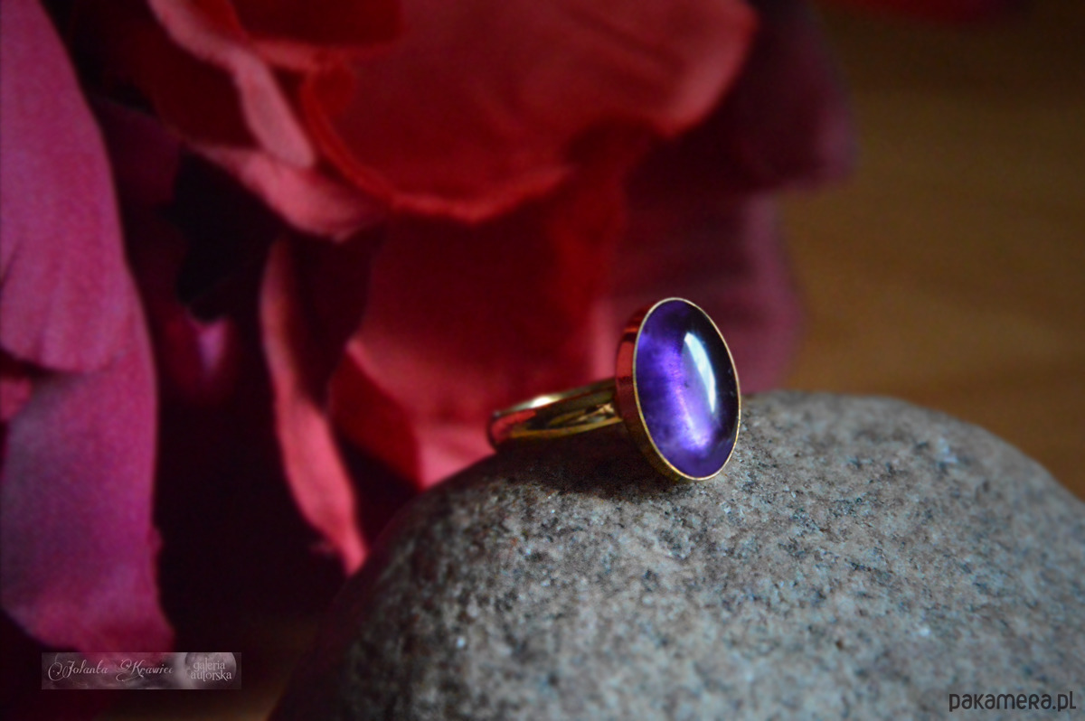 Ametyst z Zairu Pierścionek Srebro 24K