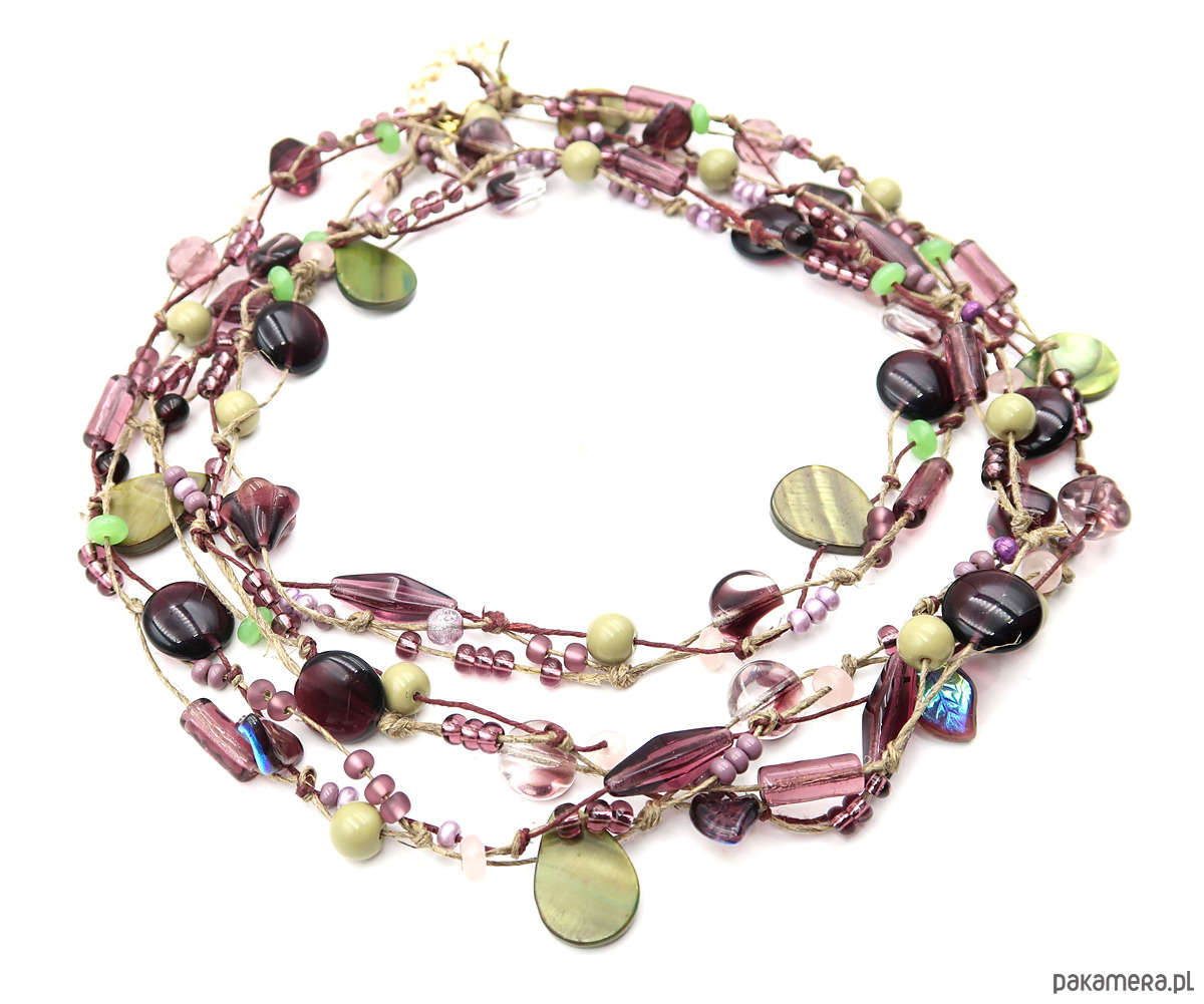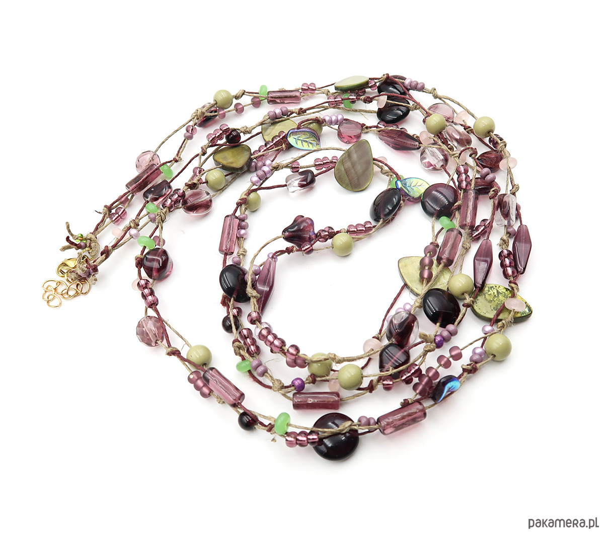 W splocie znalazły się piękne elementy szklane czeskiej firmy Jablonex, masa perłowa w kształcie listków.