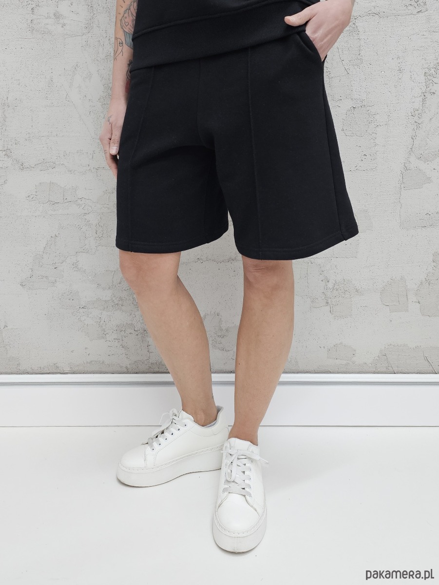 OPIS PRODUKTU- Oversizowy komplet Amrita uszyty z naszego sygnowanego materiału superSOFT™. Komplet obejmuje luźny, oversizowy bezrękawnik ze stójką na zamek oraz spodenki o luźnym kroju z luźnymi nogawkami i ozdobnym przeszyciem na przodzie. W spodenkach elastyczny ściągacz z gumą i sznurkiem do płynnej regulacji obwodu.