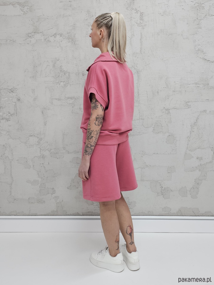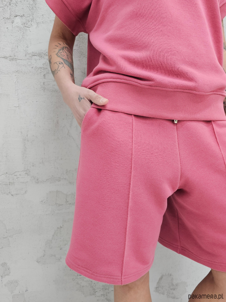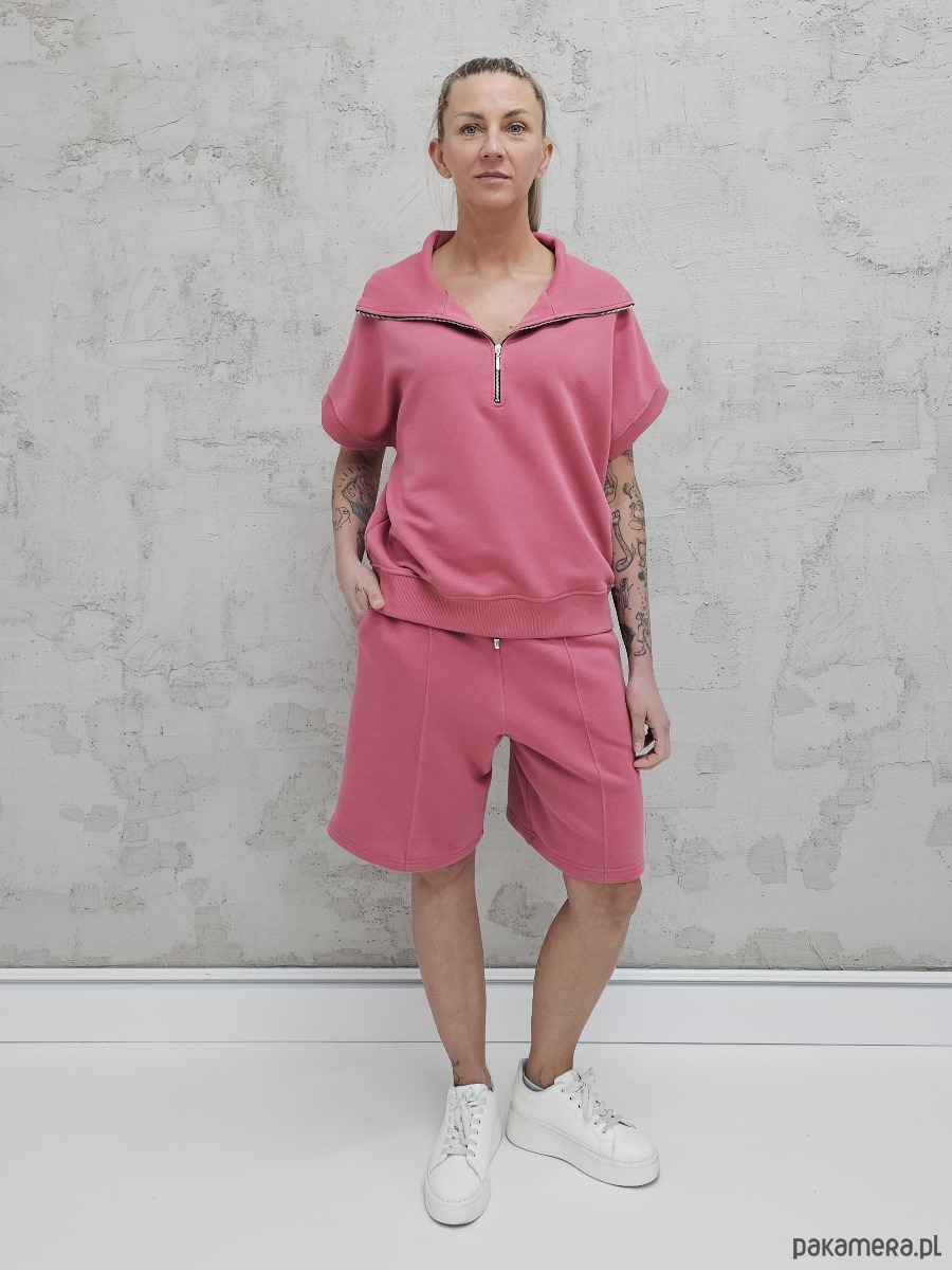 OPIS PRODUKTU- Oversizowy komplet Amrita uszyty z naszego sygnowanego materiału superSOFT™. Komplet obejmuje luźny, oversizowy bezrękawnik ze stójką na zamek oraz spodenki o luźnym kroju z luźnymi nogawkami i ozdobnym przeszyciem na przodzie. W spodenkach elastyczny ściągacz z gumą i sznurkiem do płynnej regulacji obwodu.