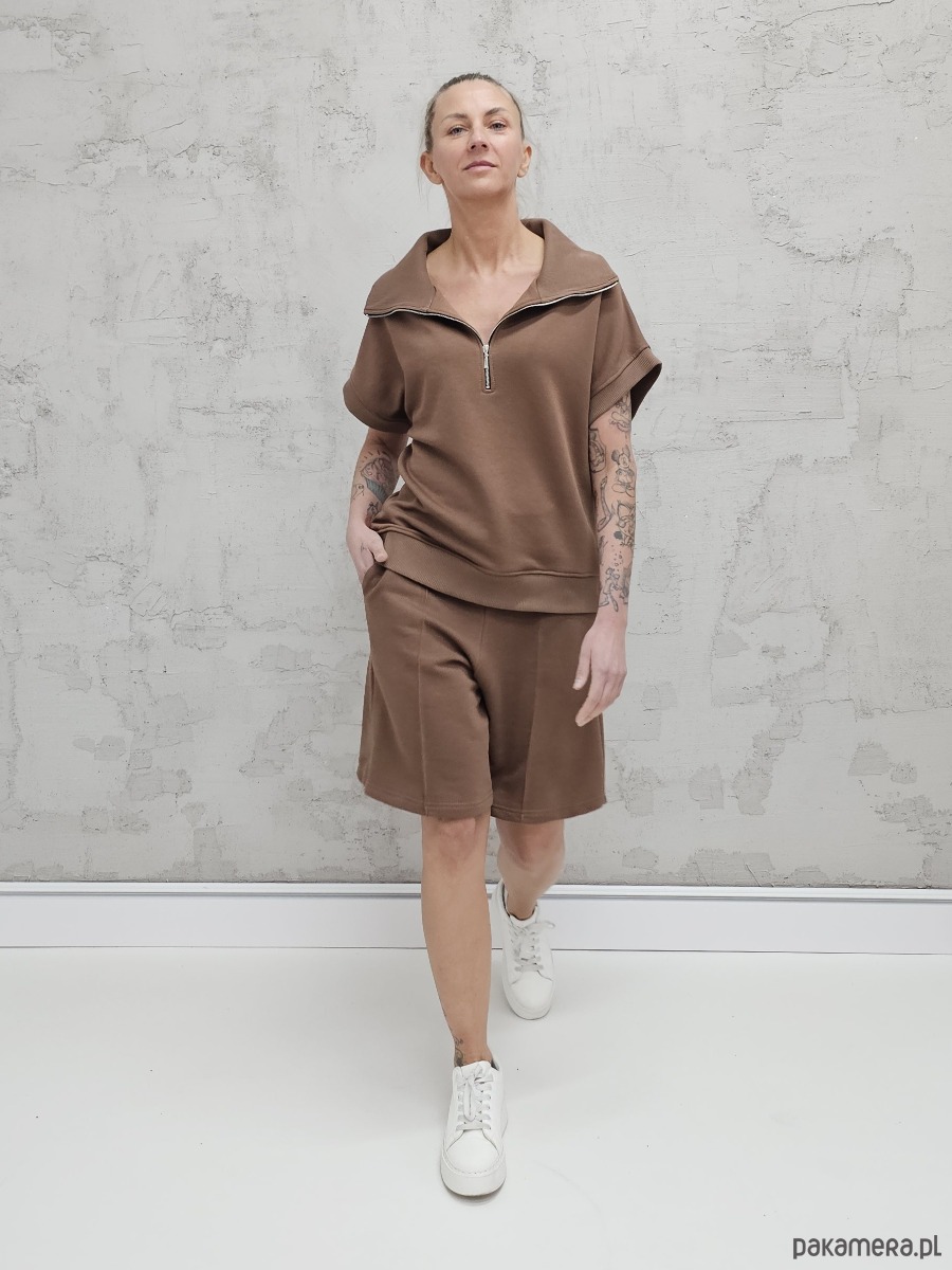 Amrita komplet bezrękawnik z zamkiem i spodenki Milk Chocolate