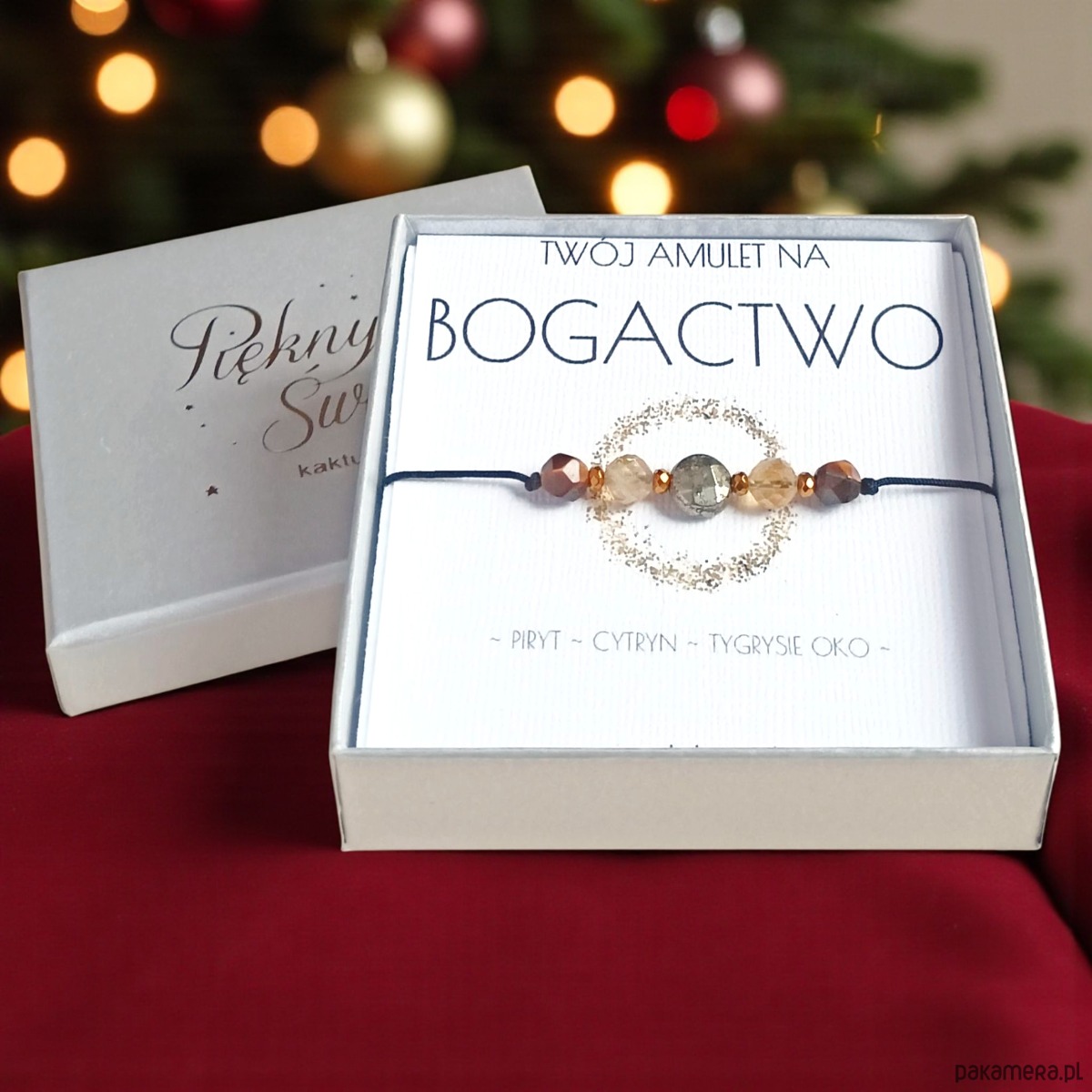Amulet - BOGACTWO - świąteczne pudełko - PIRYT, CYTRYN, TYGRYSIE OKO