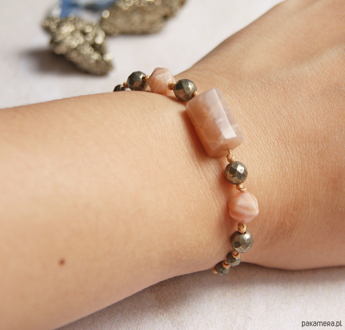 - kamień słoneczny (fasetowany, nieregularny, niedoskonały wałek - ok.15mm; fasetowane bryłki 8mm)