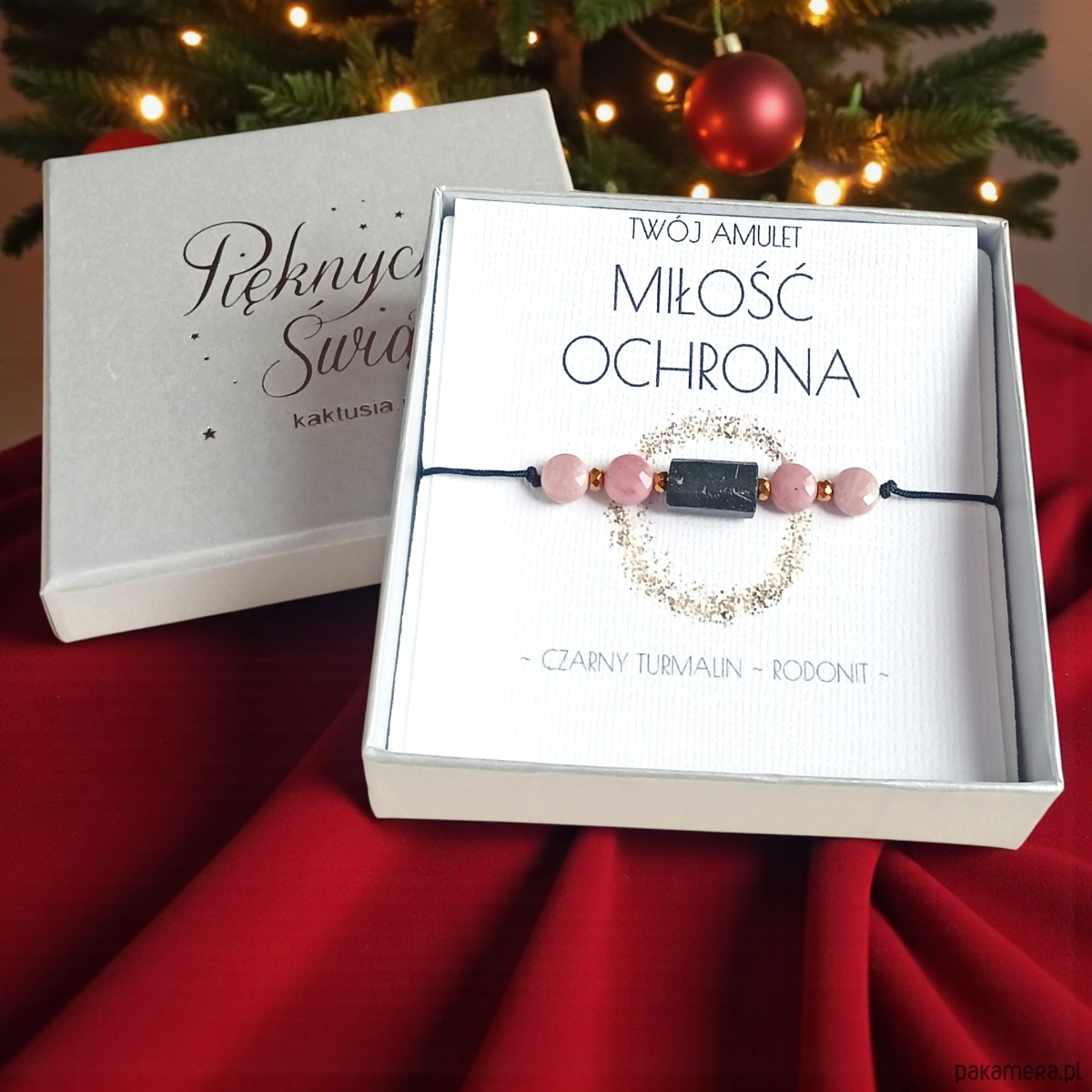 Amulet - MIŁOŚĆ i OCHRONA - świąteczne pudełko - TURMALIN, rodonit