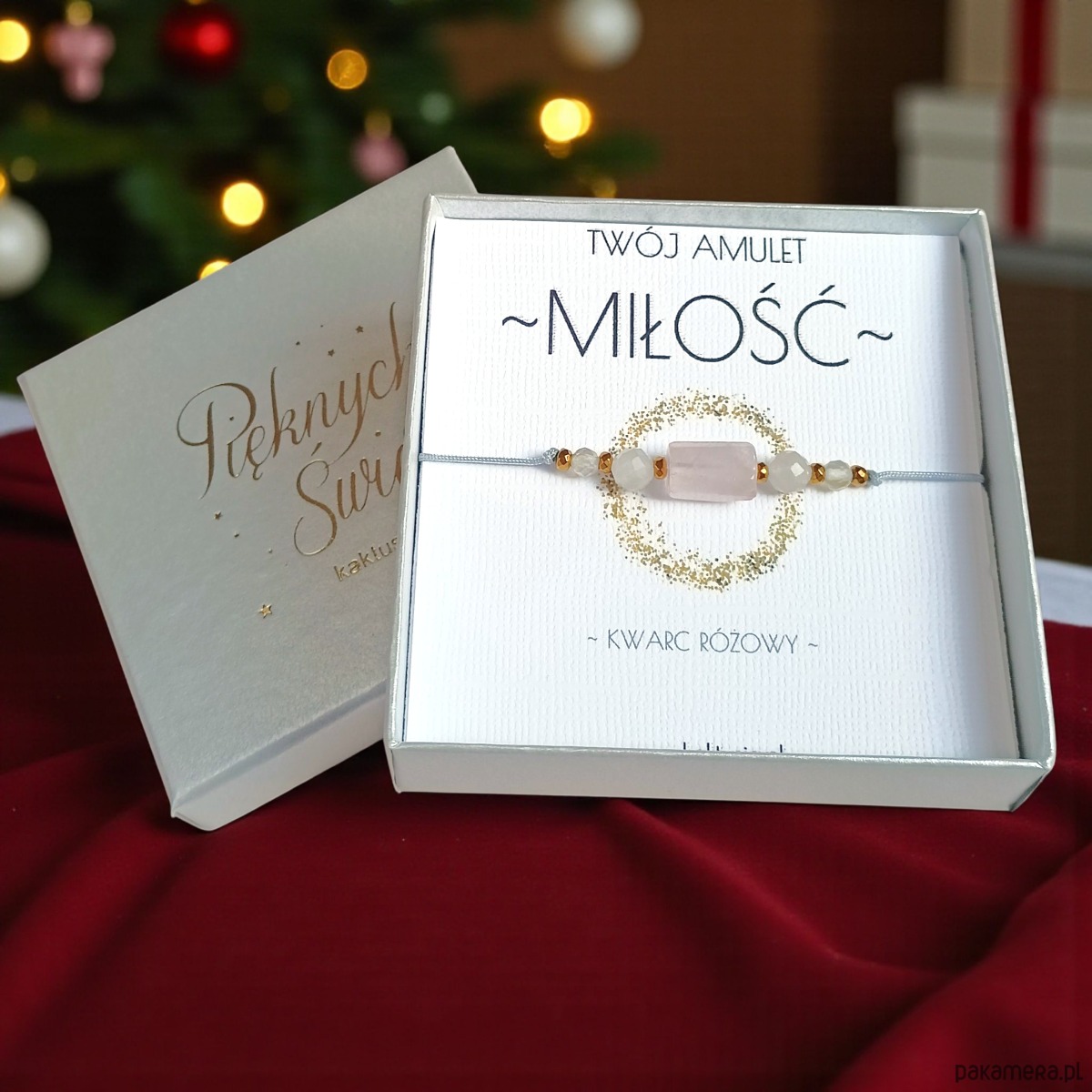 Amulet - MIŁOŚĆ - świąteczne pudełko - kwarc różowy