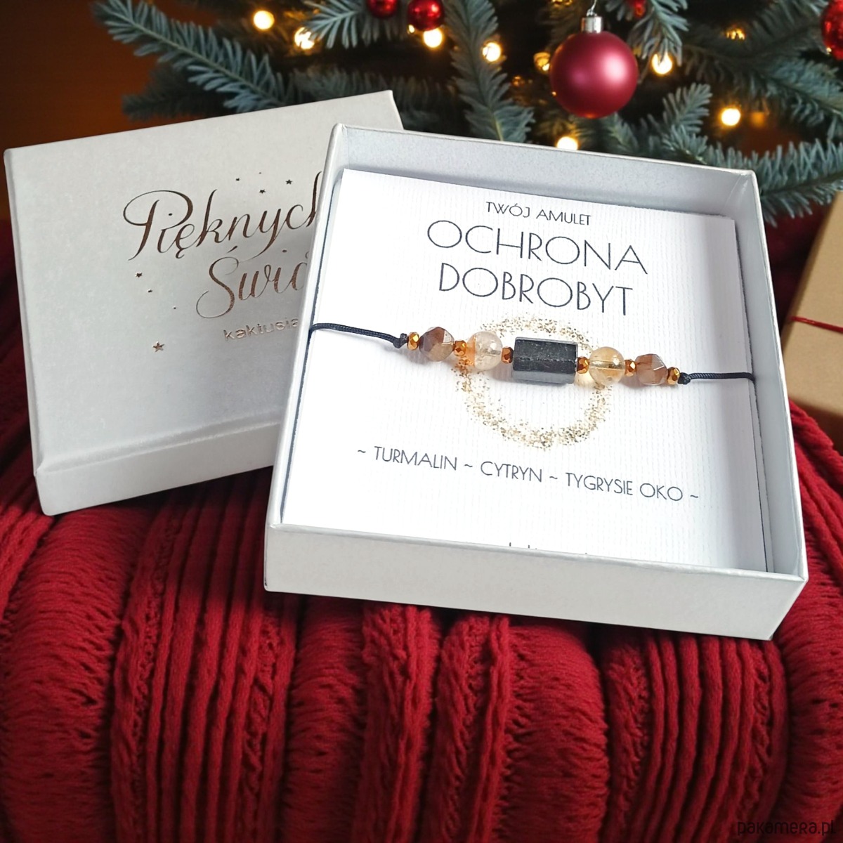 Amulet - OCHRONA i DOBROBYT - świąteczne pudełko - TURMALIN, cytryn