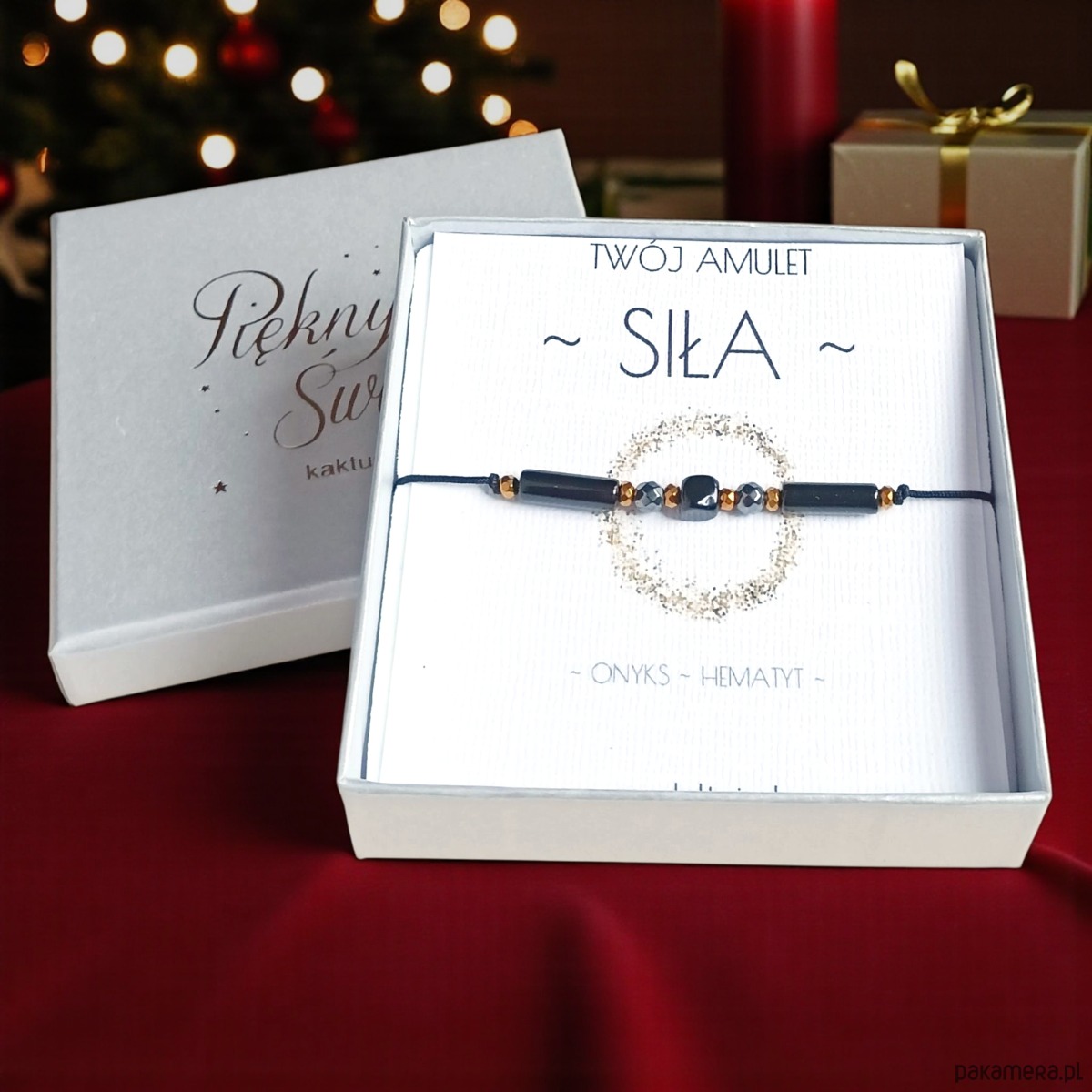 Amulet - SIŁA - świąteczne pudełko - ONYKS, HEMATYT