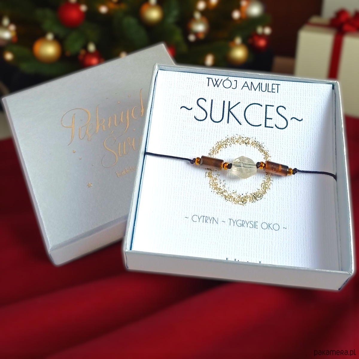 Amulet - SUKCES - świąteczne pudełko - cytryn, tygrysie oko