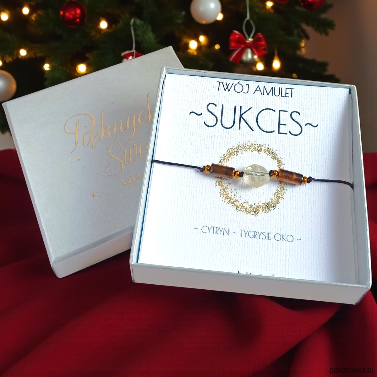 Amulet - SUKCES - świąteczne pudełko - cytryn, tygrysie oko