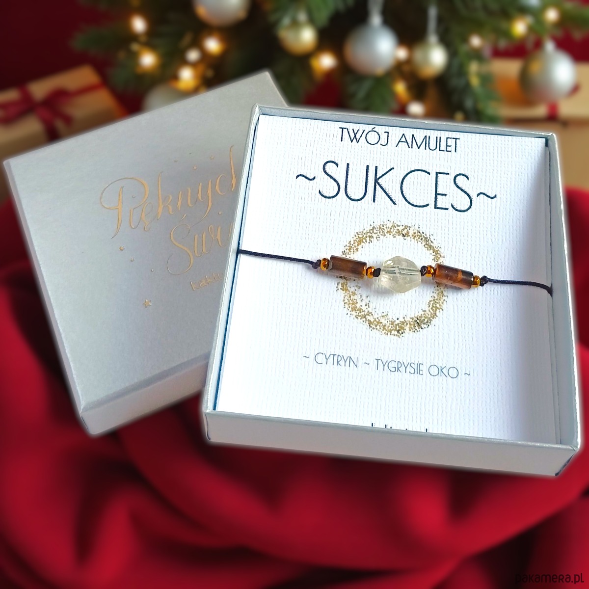 Amulet - SUKCES - świąteczne pudełko - cytryn, tygrysie oko