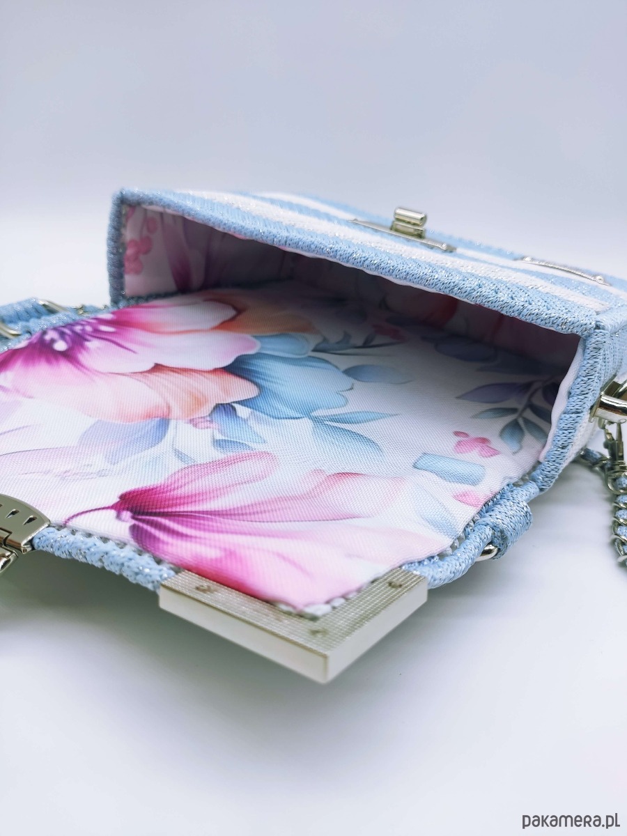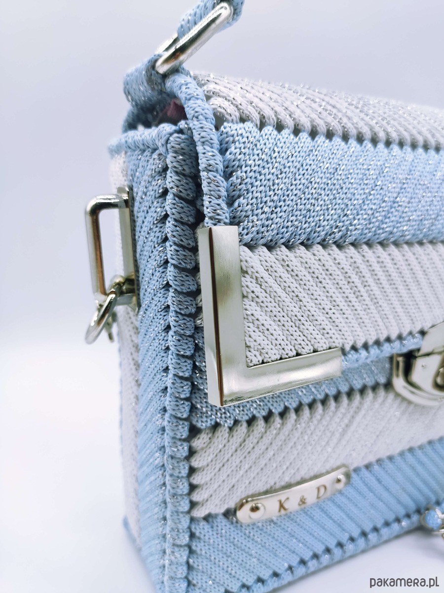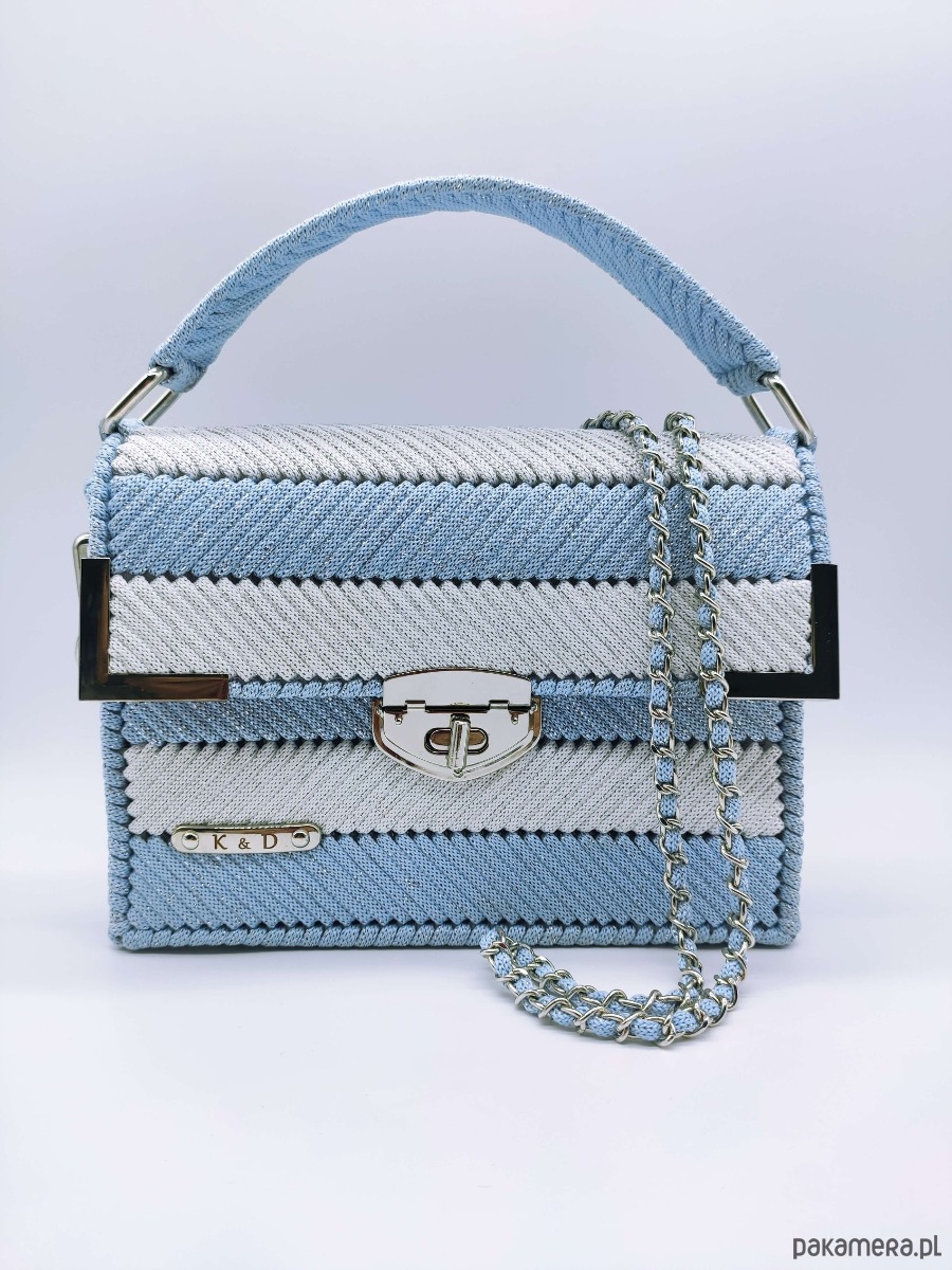 Nasza niebieska torebka z elegancką srebrną nitką (glitter) to idealny wybór dla kobiet ceniących oryginalne torebki i rękodzieło.