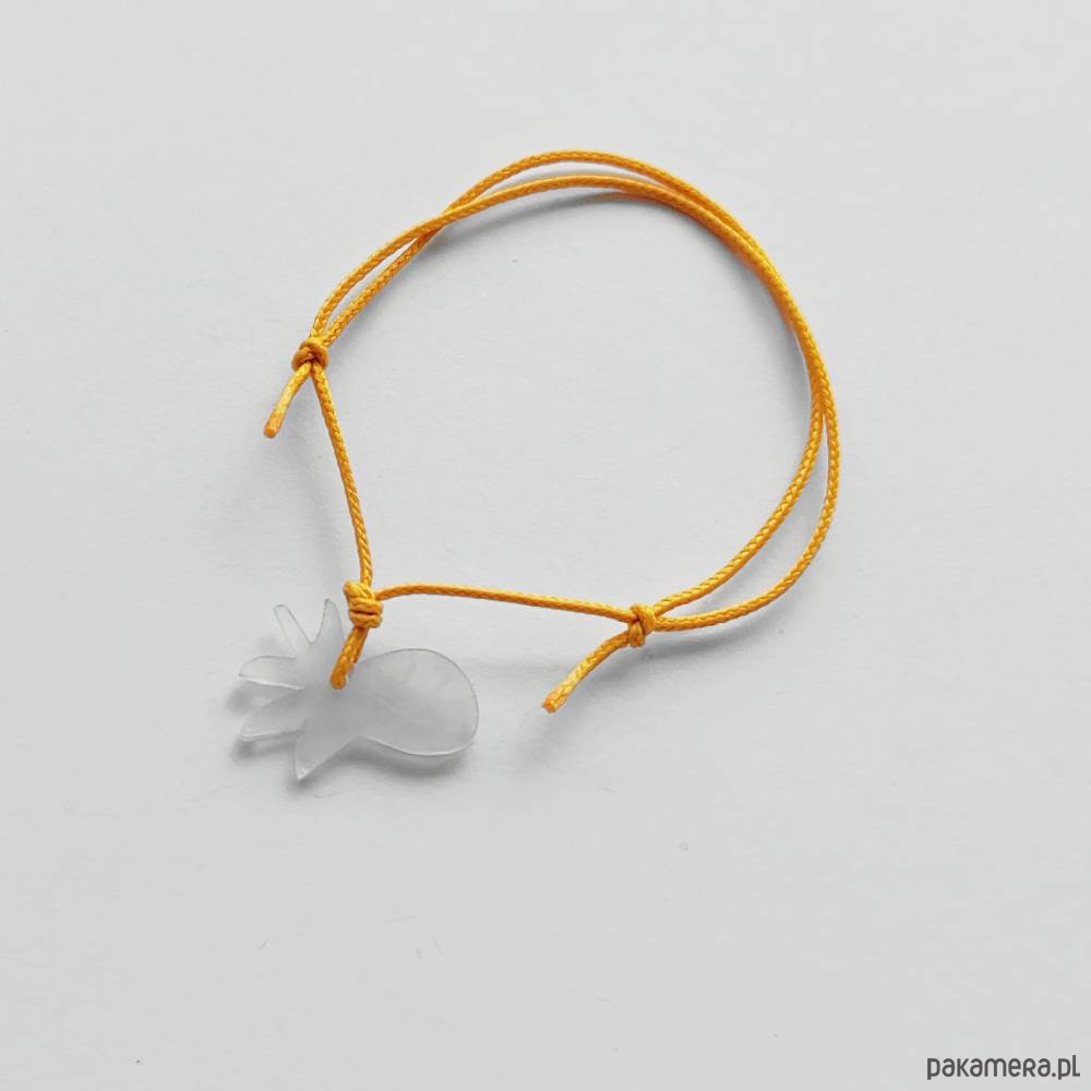 ANANAS bransoletka- zabawny dodatek. Ciekawy dodatek przykuwają uwagę i zaskakuje wzornictwem. Taka bransoletka sprawi, że każda stylizacja nabierze niepowtarzalnego, fantazyjnego charakteru. Bransoletka wykonana jest z: tworzywo sztuczne, ozdobny sznurek. Tworzywo sztuczne - zmatowione. Długość zawieszki 2 cm. Szeroko - 1,5 cm.