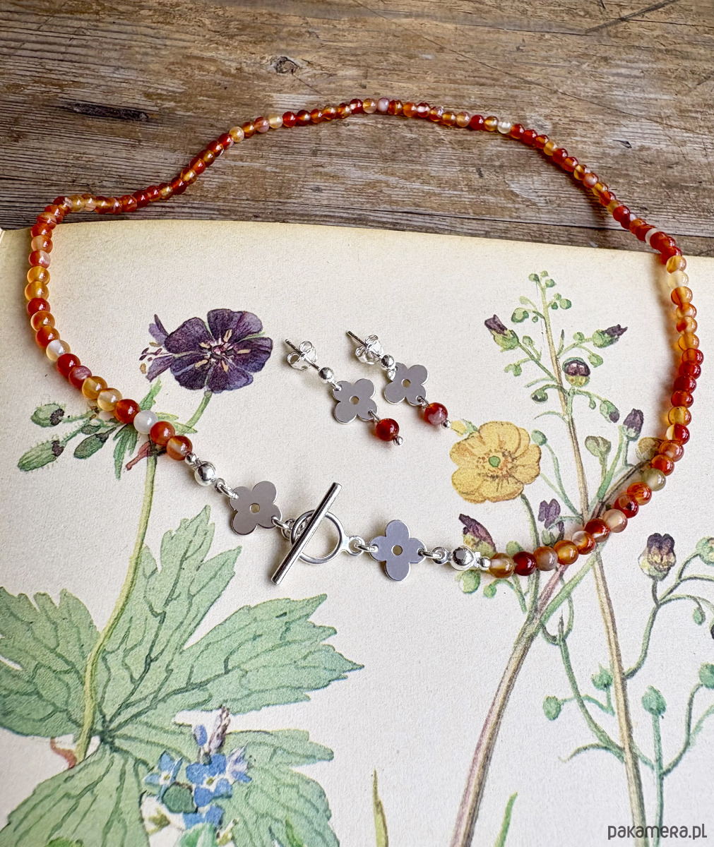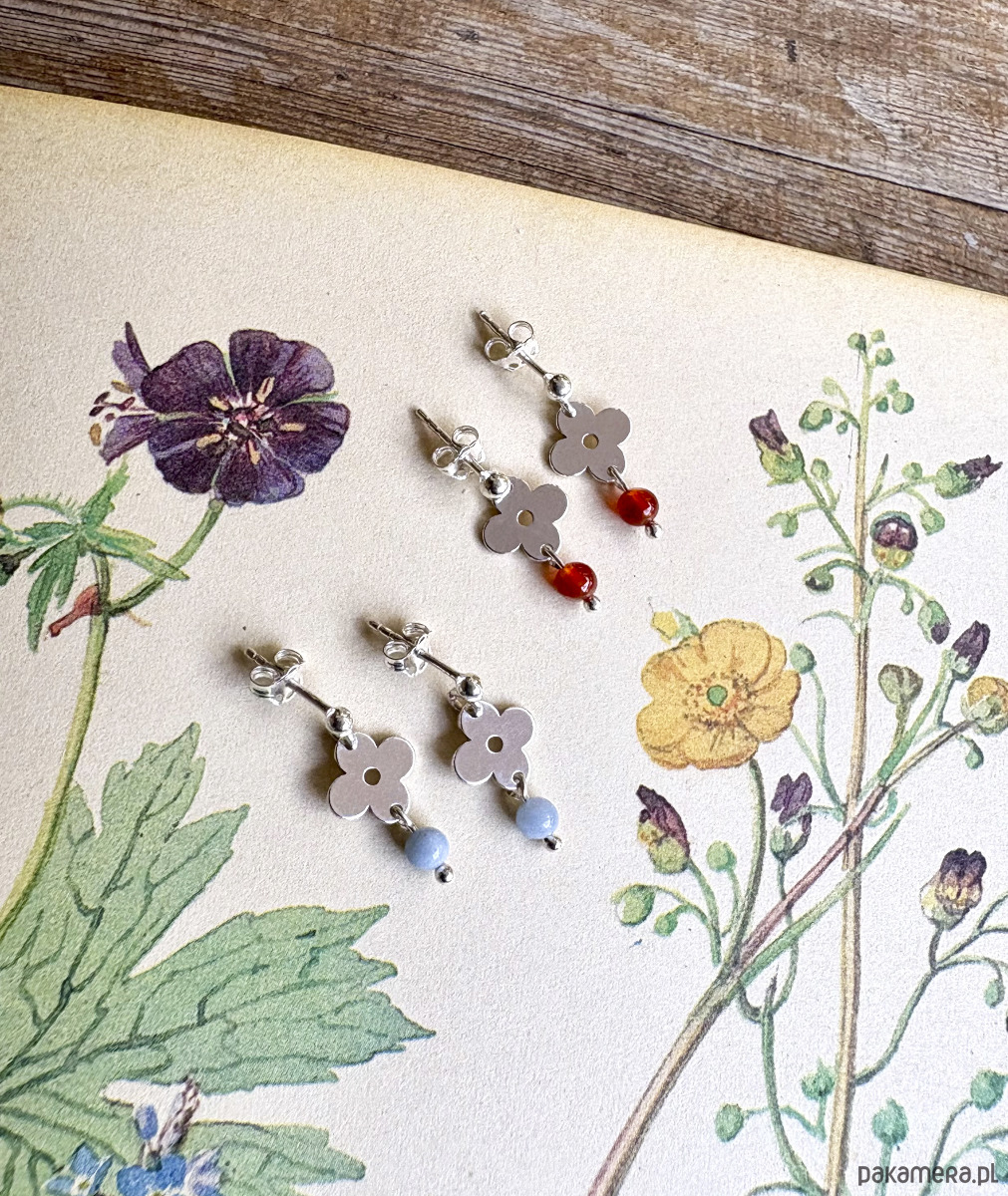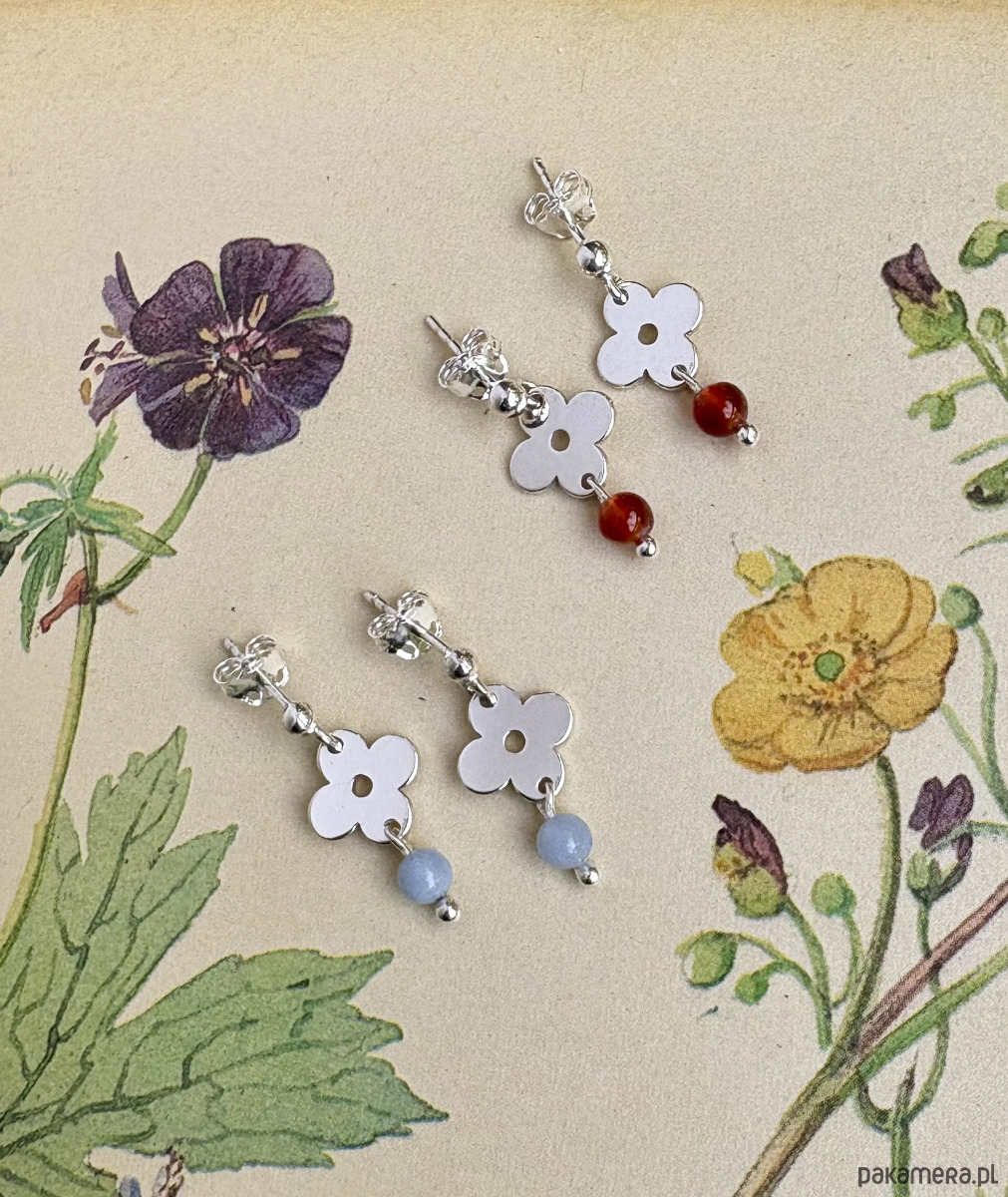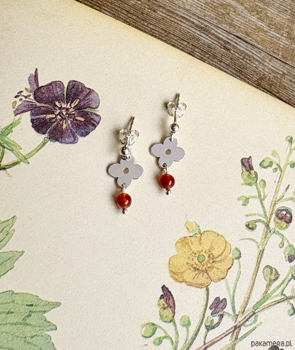 Anemone Sky mini- Sztyfty inspirowane roślinnymi wzorami z lat 70 z dodatkiem pomarańczowych kamieni karneolu.