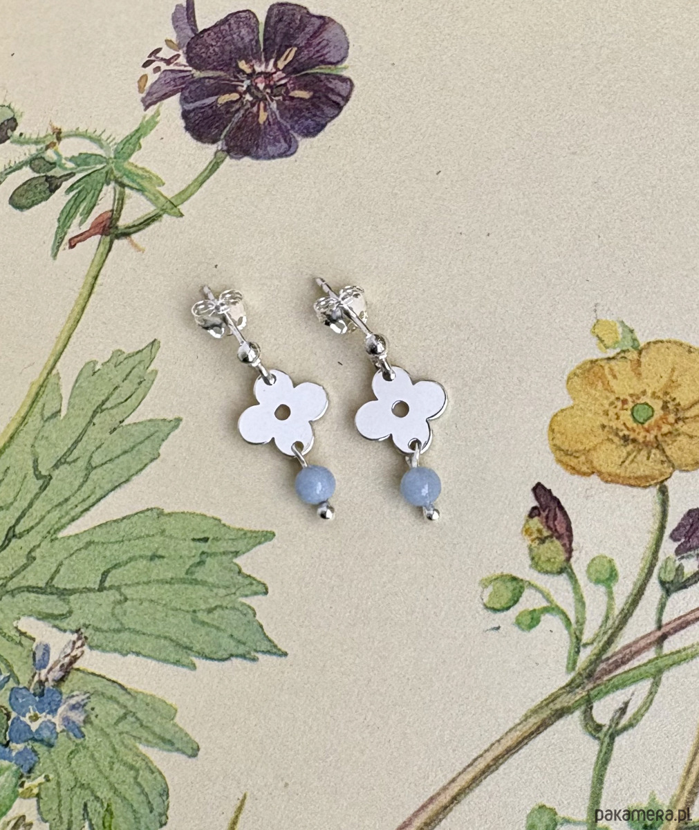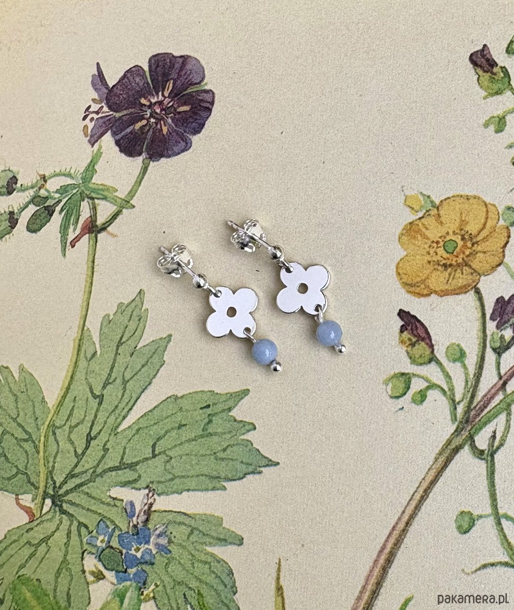 Anemone Sky mini- Sztyfty inspirowane roślinnymi wzorami z lat 70 z dodatkiem naturalnych kamieni błękitnego angelitu.