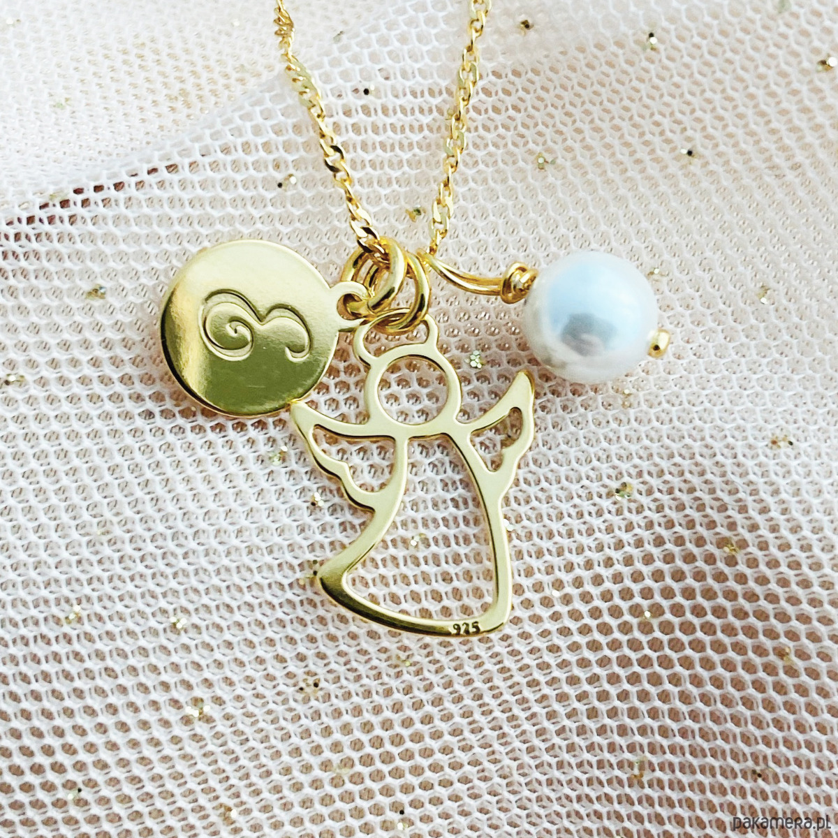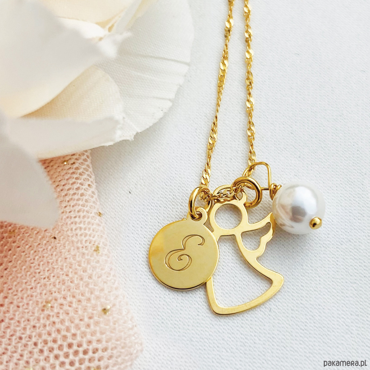 SWEET ANGEL - personalizowany Naszyjnik z okazji KOMUNII aniołek i literka