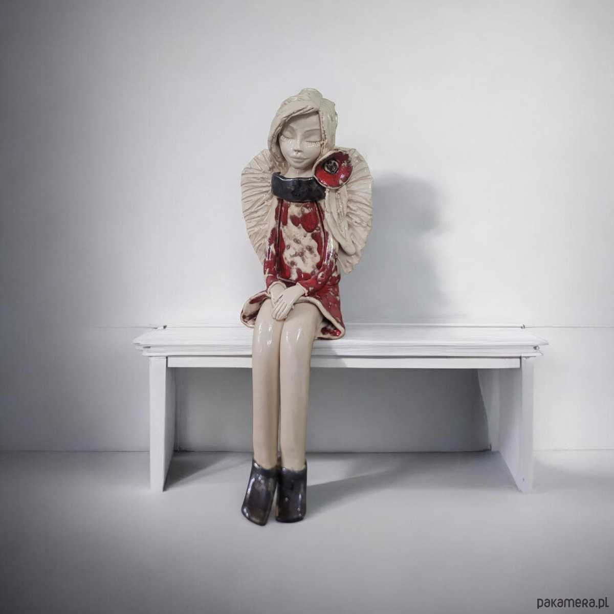 Ceramiczny anioł siedzący