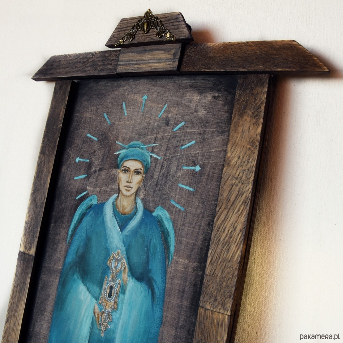Anioł Klucznik XVII obraz ręcznie malowany na drewnie