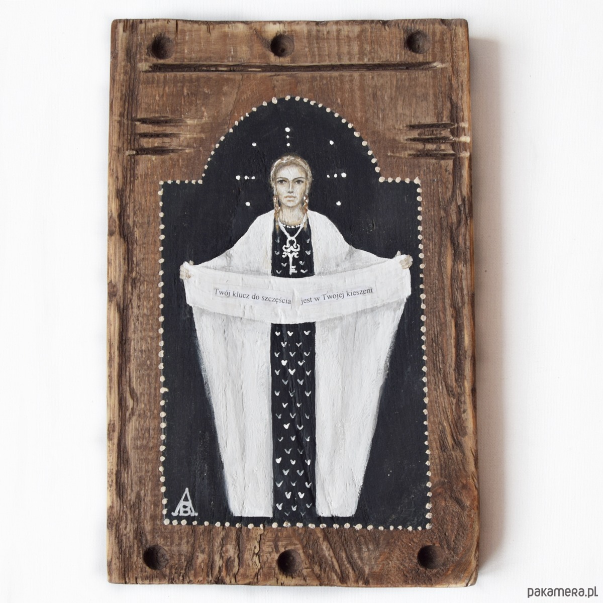 Każdy oferowany przeze mnie obraz jest w 100% ręcznie malowany. Wykonuję je osobiście, z pasją i dbałością o szczegóły. Nie są to ani obrazy drukowane ani zlecane do wykonania zewnętrznym artystom. Malowany jest na płótnie, lub, jak np. w tym przypadku- na drewnie.