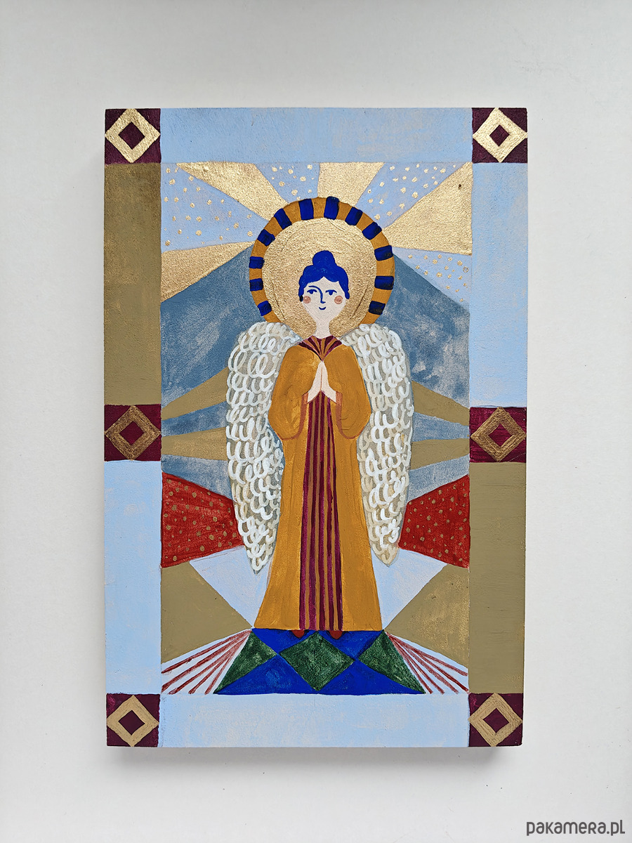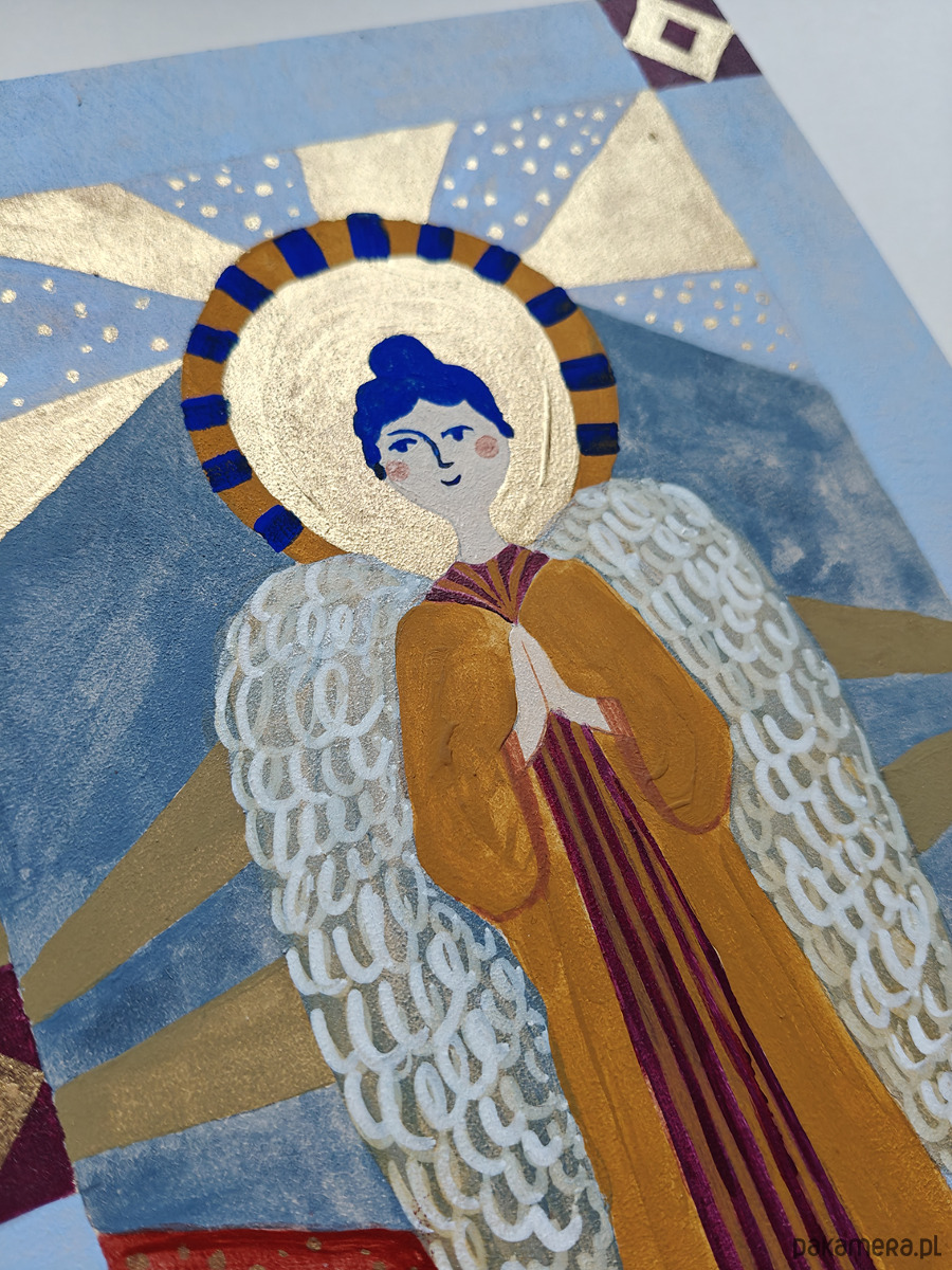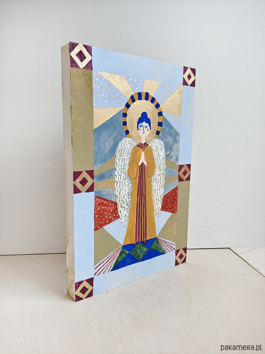 Anioł malowany na desce, unikatowy prezent