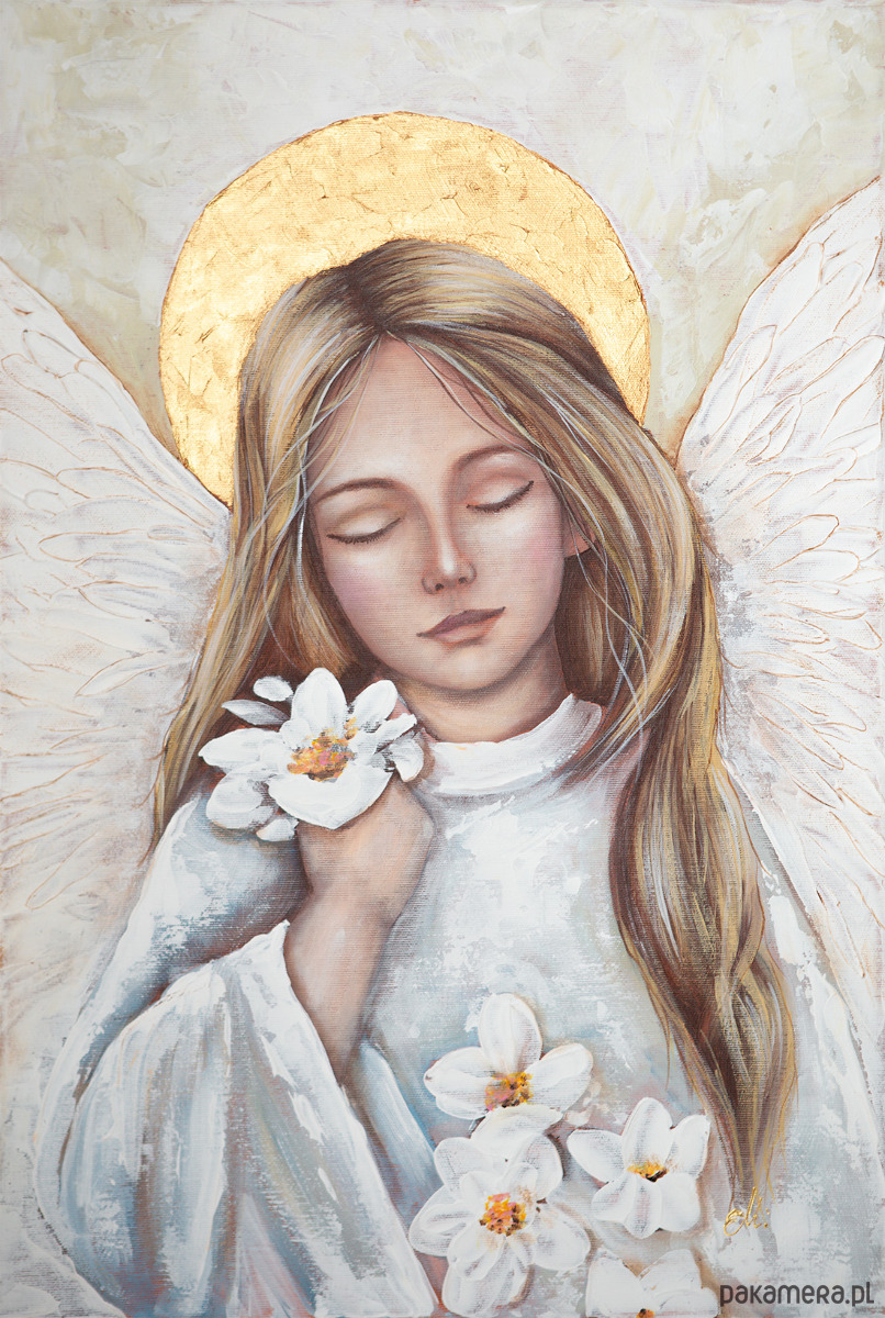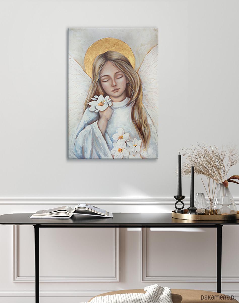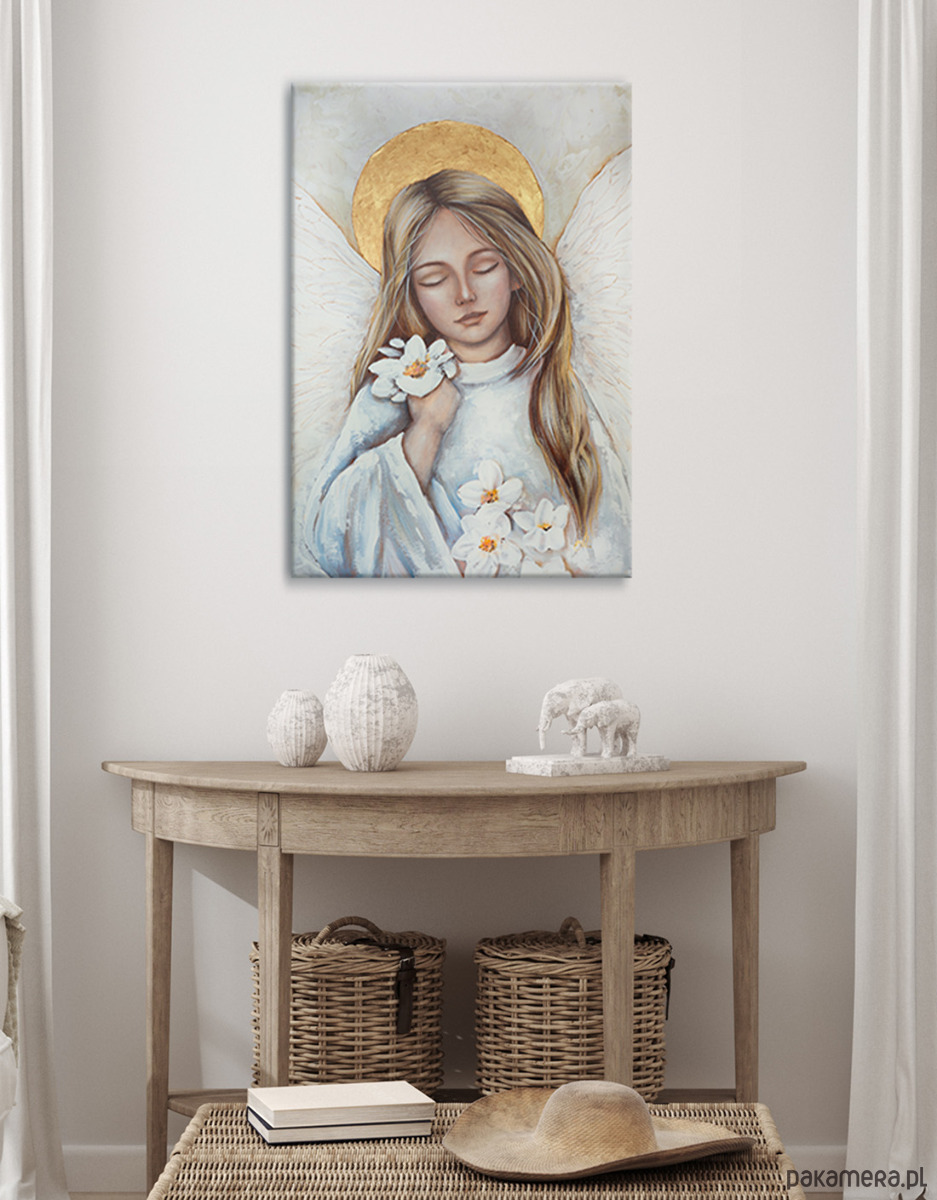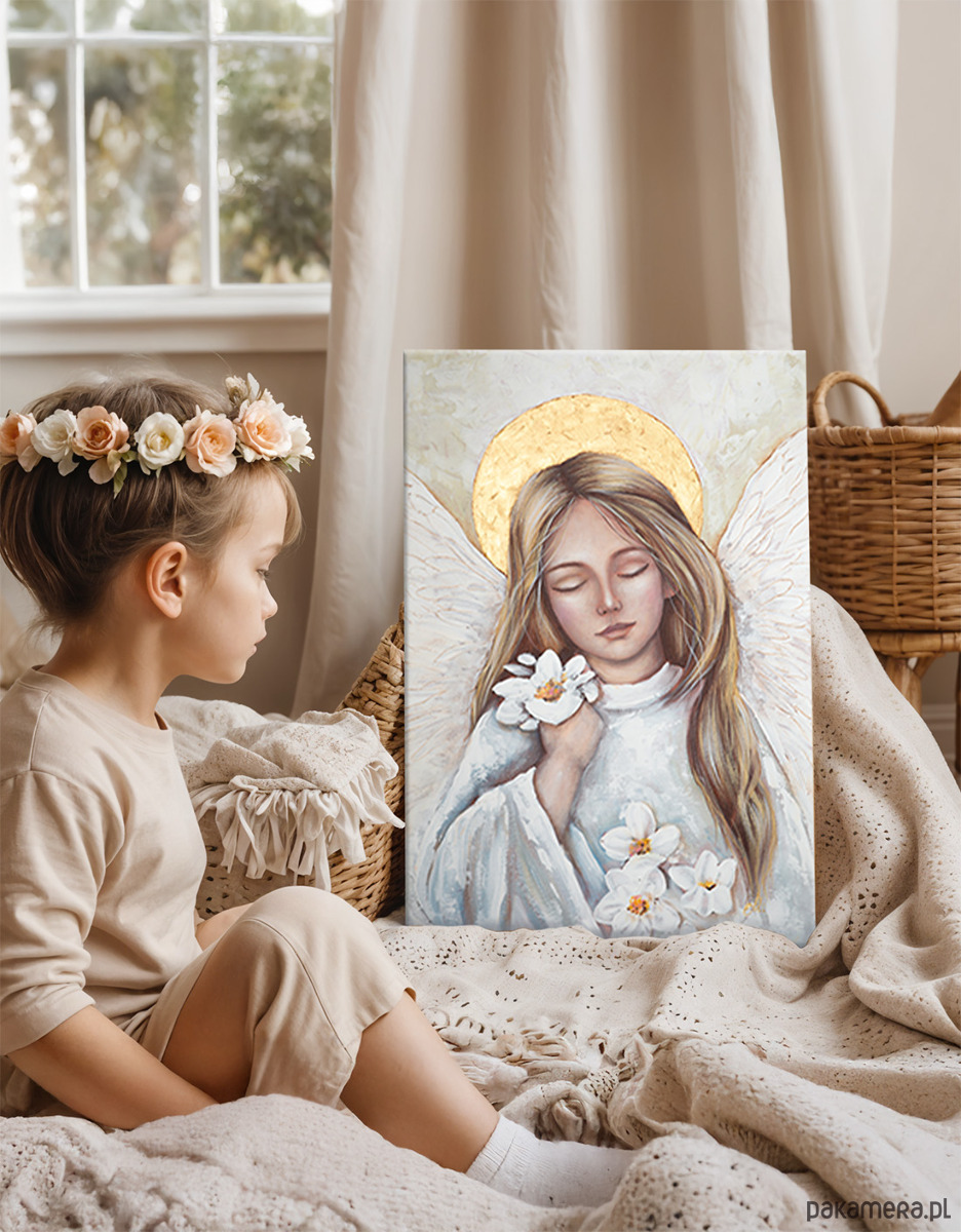 Anioł na płótnie, ręcznie malowany 40x60 cm Twoja dedykacja