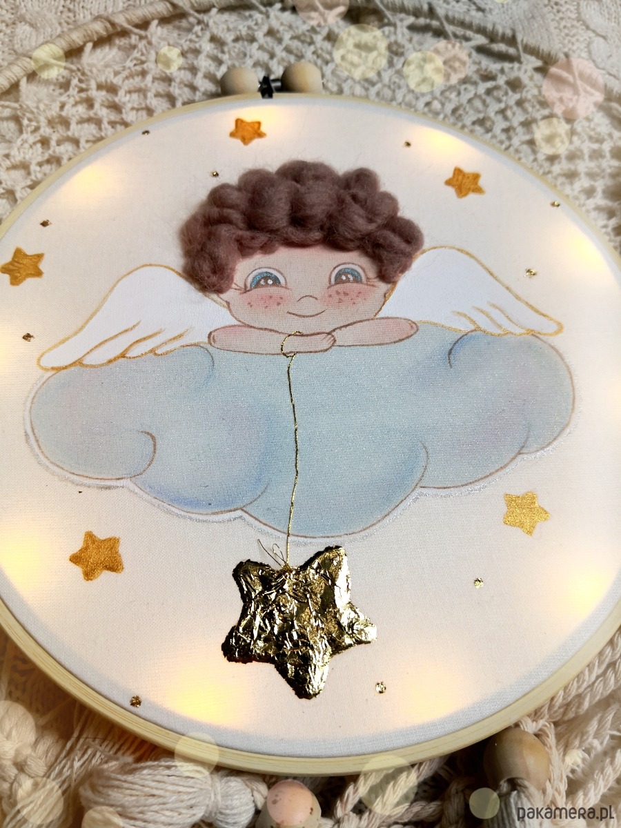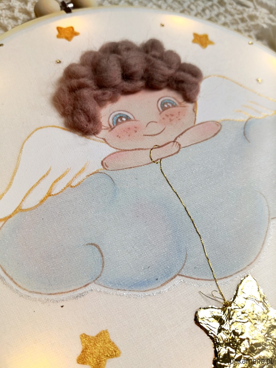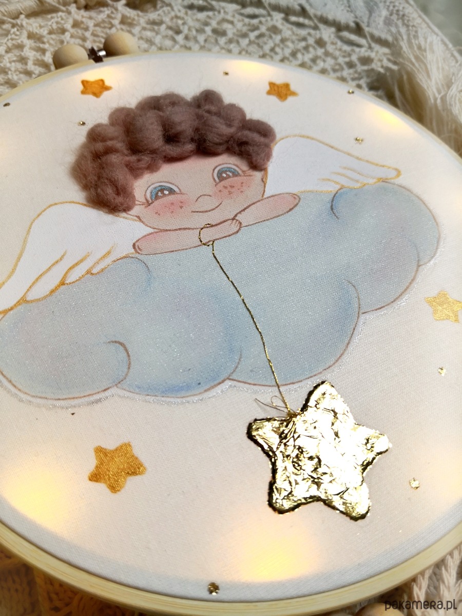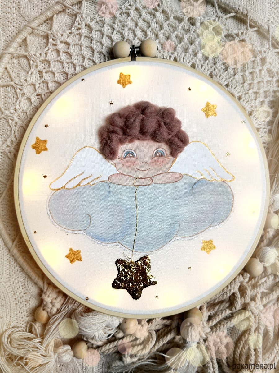 Anioł Stróż na chmurce, obrazek z lampkami led