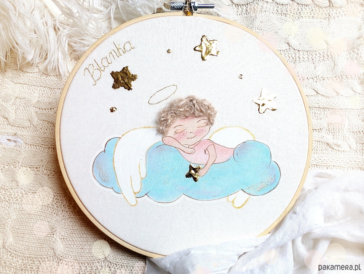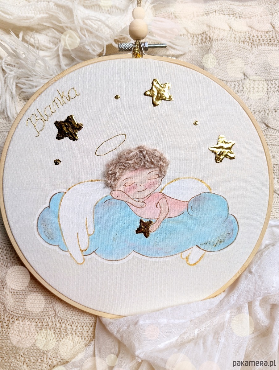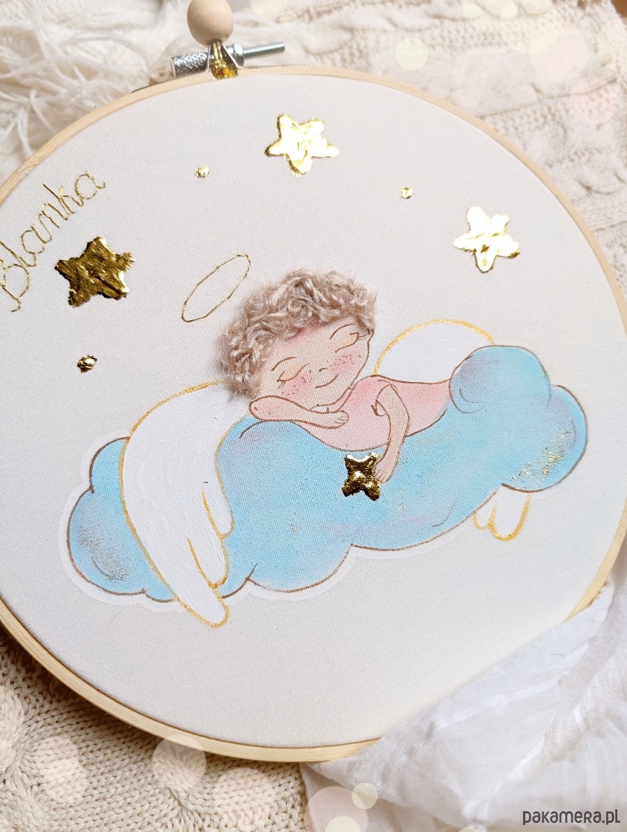 Anioł Stróż na chmurce, personalizowany obrazek dla dziewczynki