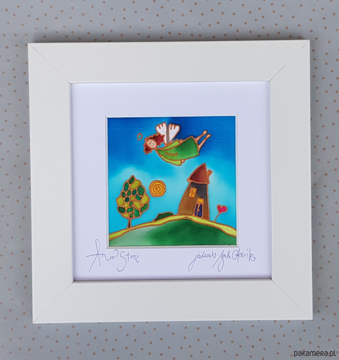 Miniatura ręcznie malowana na naturalnym jedwabiu.