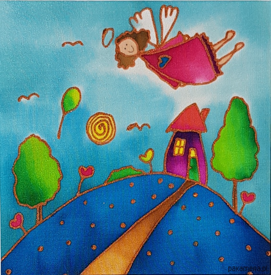 Miniatura ręcznie malowana na naturalnym jedwabiu.