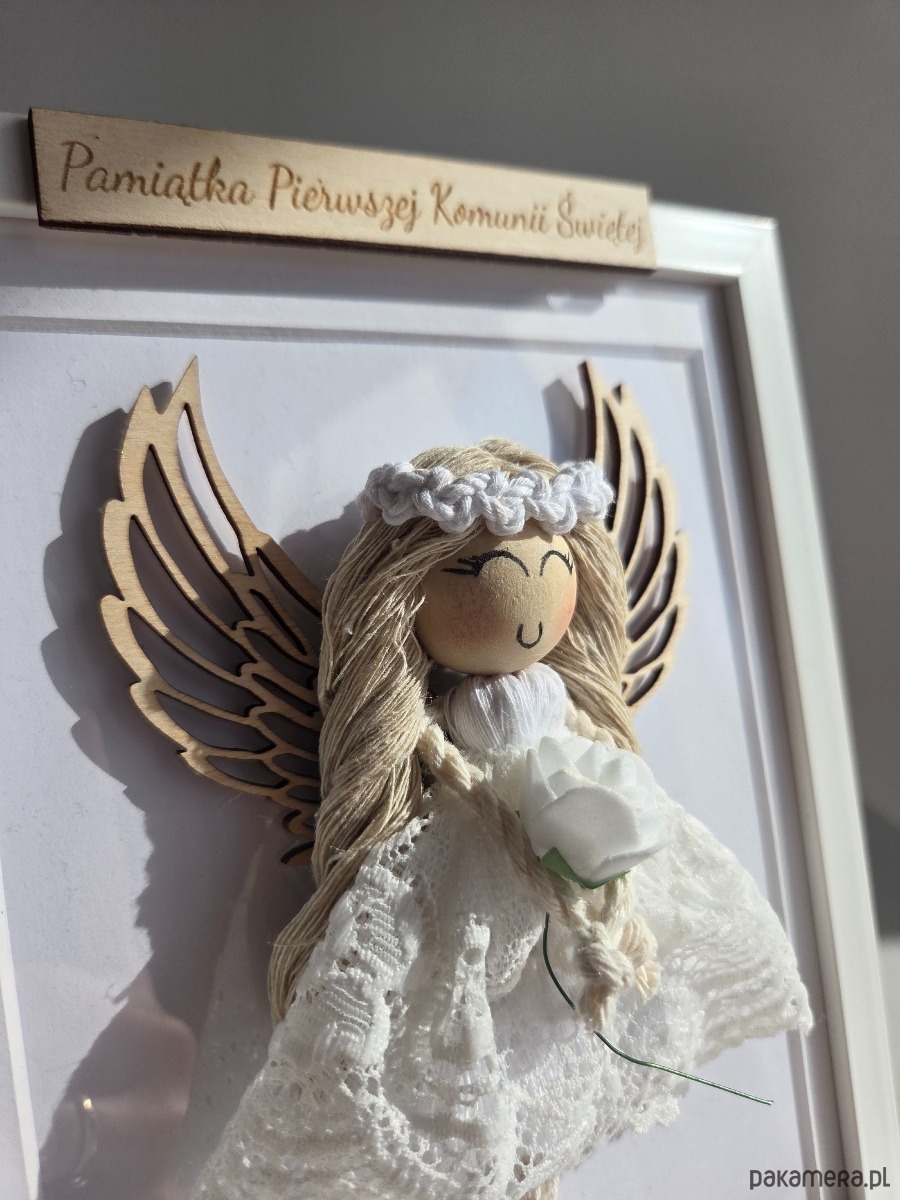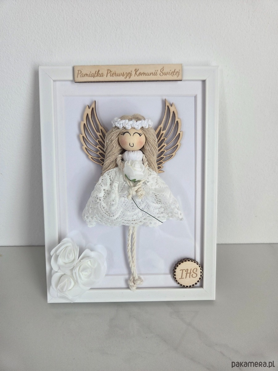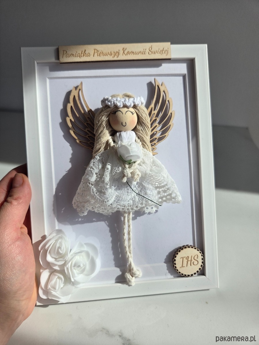 Szukasz pięknego i wyjątkowego prezentu na ważną okazję? Ręcznie wykonany aniołek makramowy w ramce to niezwykła pamiątka, która zachwyca delikatnością, starannością wykonania i symbolicznym znaczeniem.