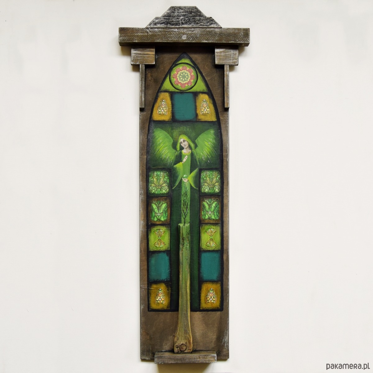 Anioł Yakshi /2/, obraz malowany na drewnie, collage