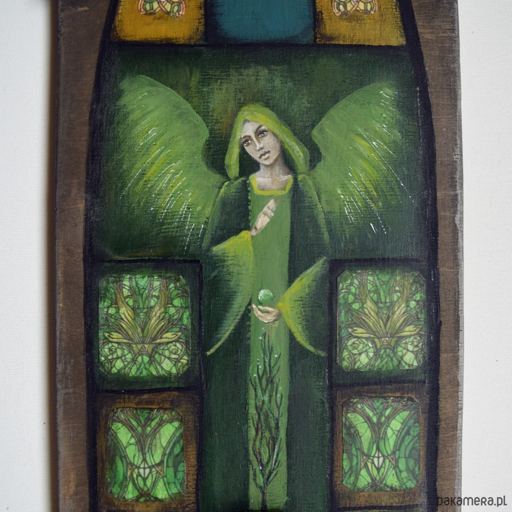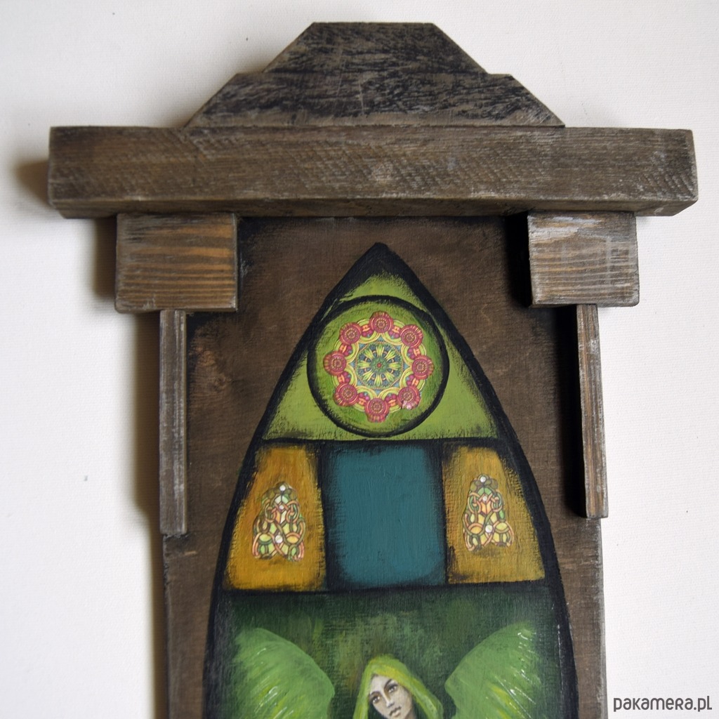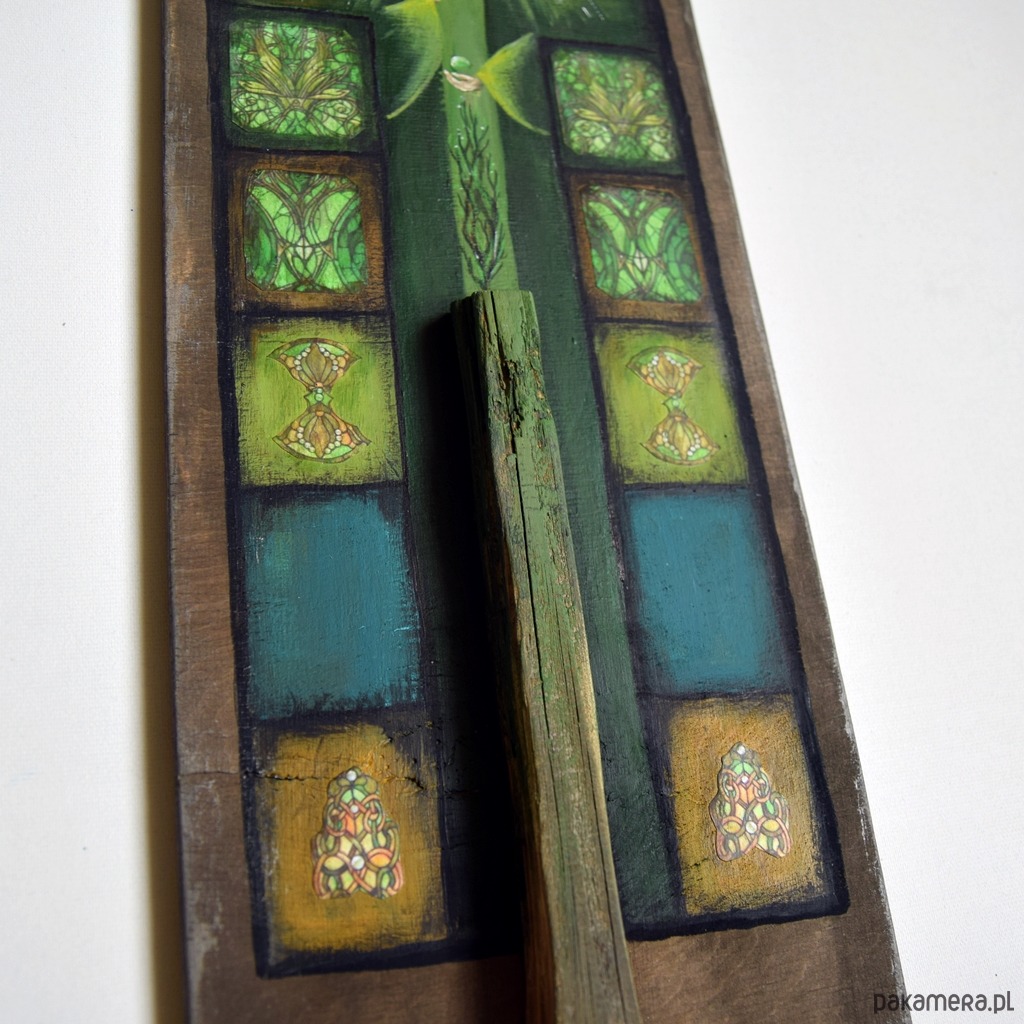 Każdy oferowany przeze mnie obraz jest w 100% ręcznie malowany. Wykonuję je osobiście, z pasją i dbałością o szczegóły. Nie są to ani obrazy drukowane ani zlecane do wykonania zewnętrznym artystom. Malowany jest na płótnie, lub, jak np. w tym przypadku- na drewnie, stanowiąc niebanalną dekorację handmade - rękodzieło.